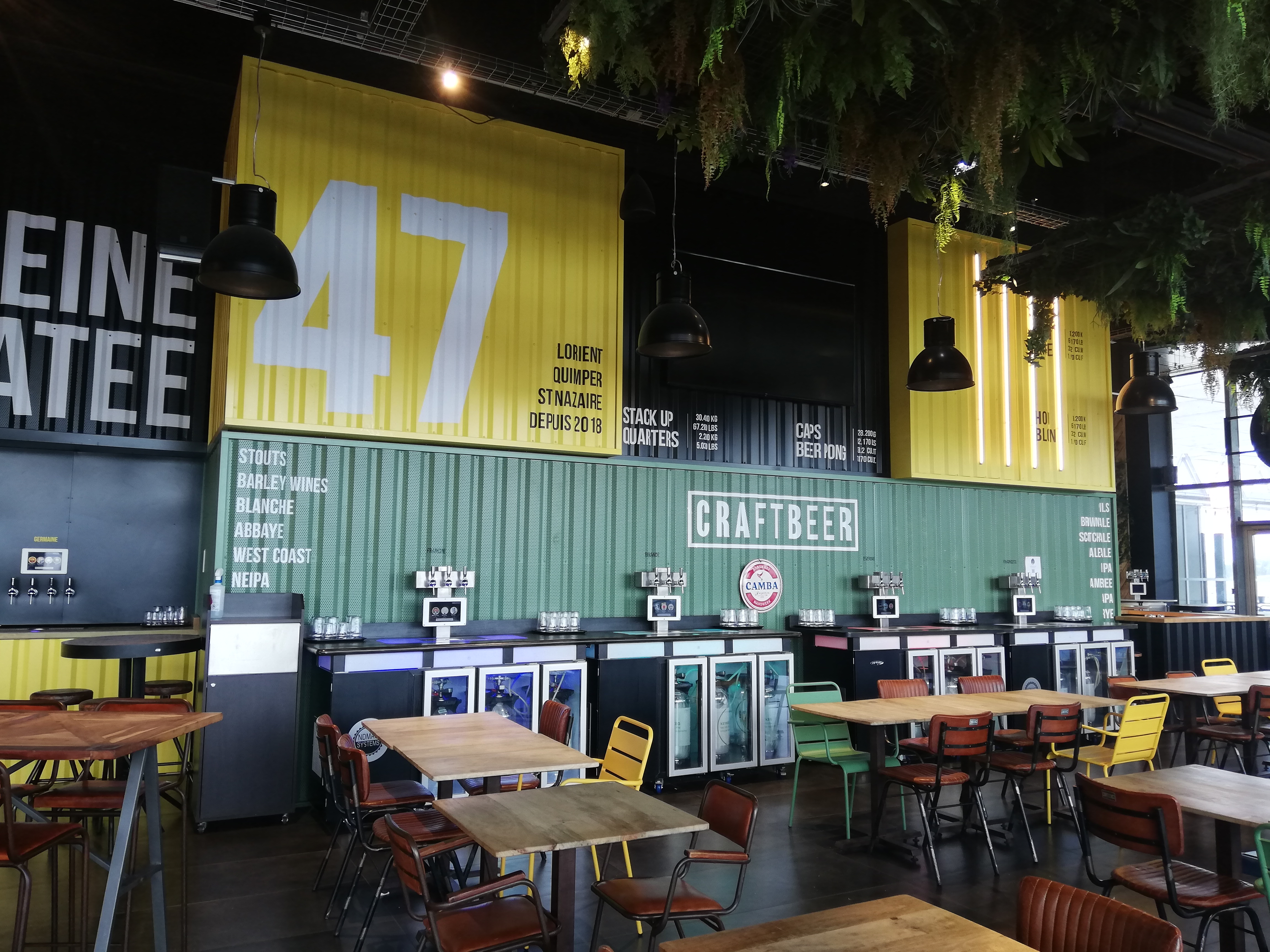 Plus de 30 sortes de bières et du cidre à tirer soi-même sur autant de tireuses, au moyen d'un système de carte rechargeable ! Il y en a pour tous les goûts et si l'on se sent un peu perdu devant cette profusion les conseils avisés et experts des serveurs ! Pour accompagner une série de mets simples et goutu, de l'assiette de charcuterie ou de fromages, en passant par des flammekuche aux saveurs recherchées et une carte courte mais bien pensée de desserts. Le lieu est charmant, à l'intérieur ou en terrasse... Un bon moment après, par exemple un saut en tyrolienne ou une visite des musées de la base Eric Tabarly.