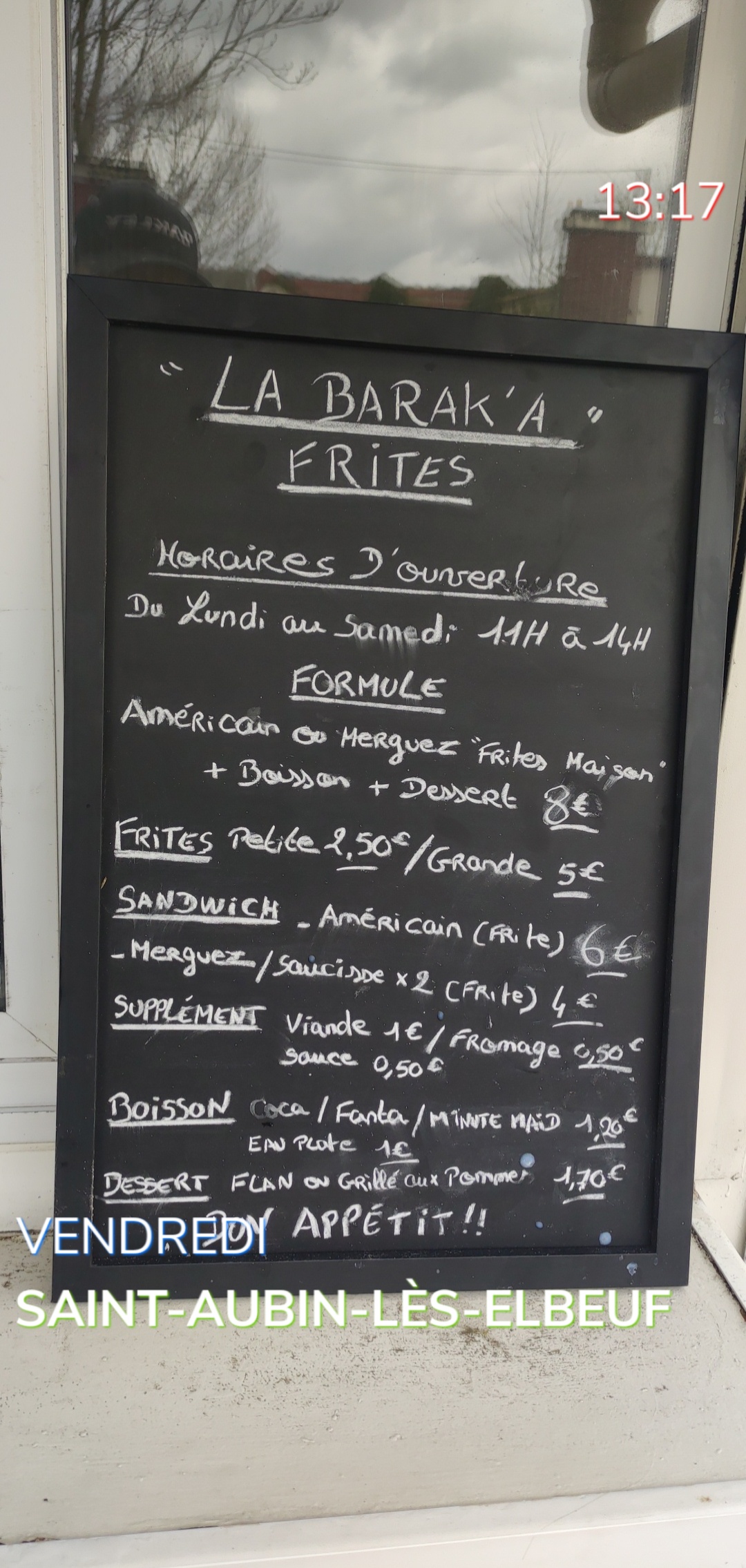 Voici toutes les informations sur le Restauration rapide La Barak’a Frites qui ce trouve au Place de la Mairie, Esplanade de, Rue de Pattensen, 76410 Saint-Aubin-lès-Elbeuf (76). Sur cette fiche vous trouverez les photos, l'adresse, les horaires d'ouverture, le numero de téléphone et les avis clients.Vous pouvez églement rédiger un avis si vous le souhaitez en bas de page.