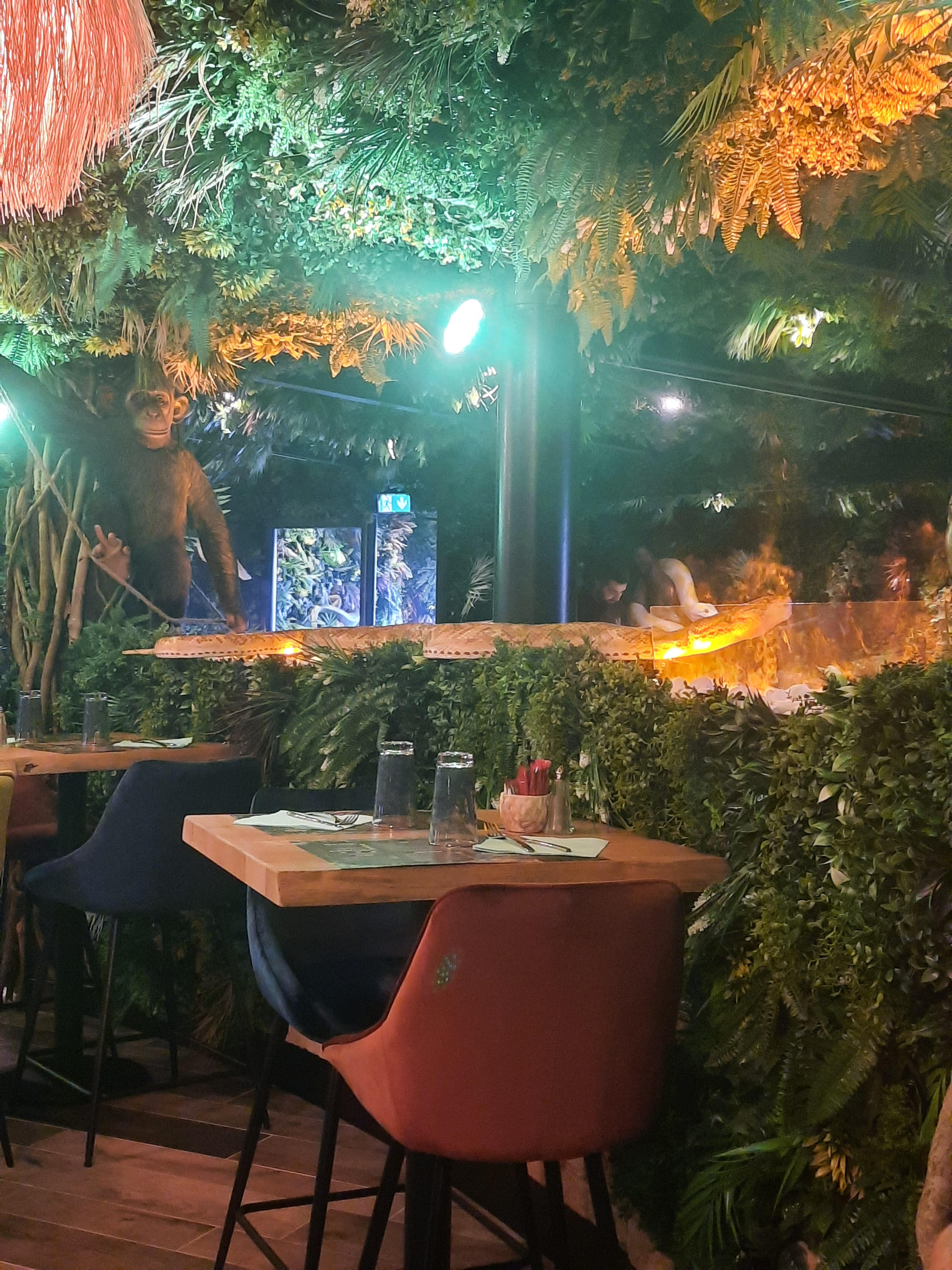 Très bel endroit, la déco est très belle est poussée dans les moindres détails. La cuisine est très bonne et le menu enfant assez copieux. Petit bémol il n'y a pas de menu adulte et je trouve dommage de manger dans la jungle mais de ne pas trouver de plats végétariens. Le personnel est très agréable Bref nous reviendrons avec plaisir