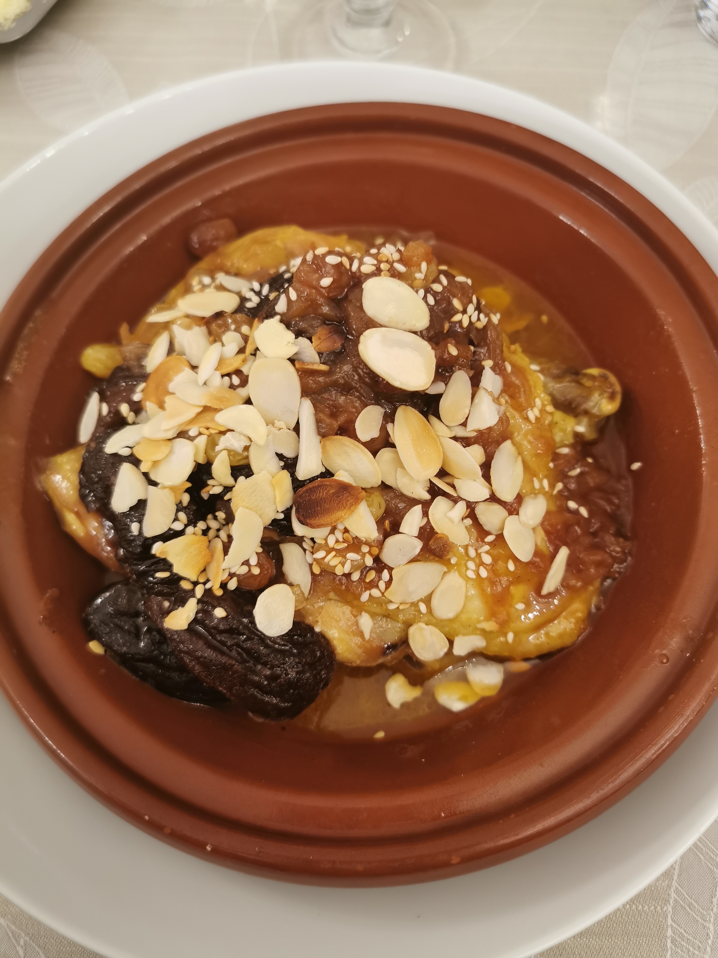 Tajine de poulet aux pruneaux succulent. Très bon accueil.