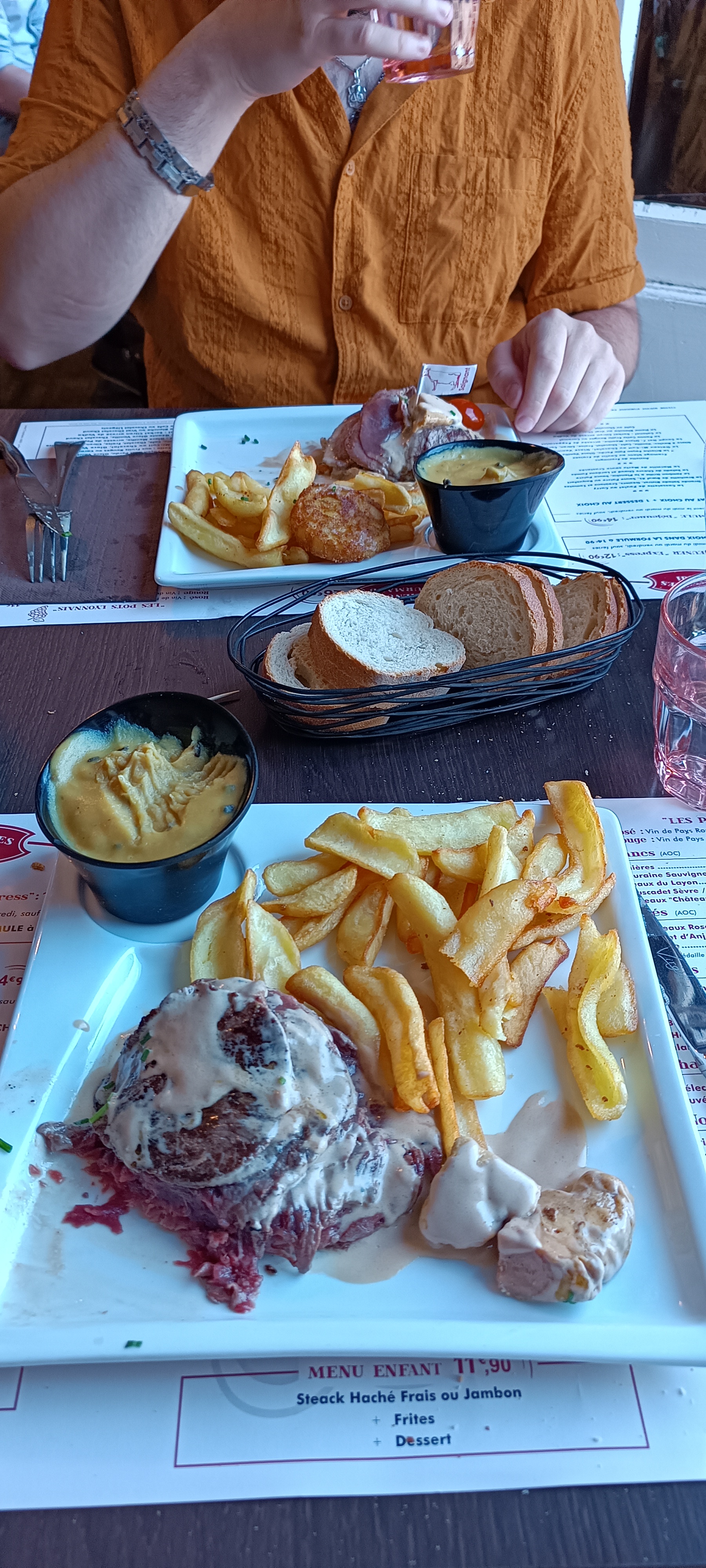 Un très bon moment passé dans ce restaurant. Très bon camembert chaut pour l'entrée. Viande tout simplement fondante. Brioche de pain perdu au top pour le dessert. Serveuse et serveurs super sympa, agréable et souriant. Nous reviendrons