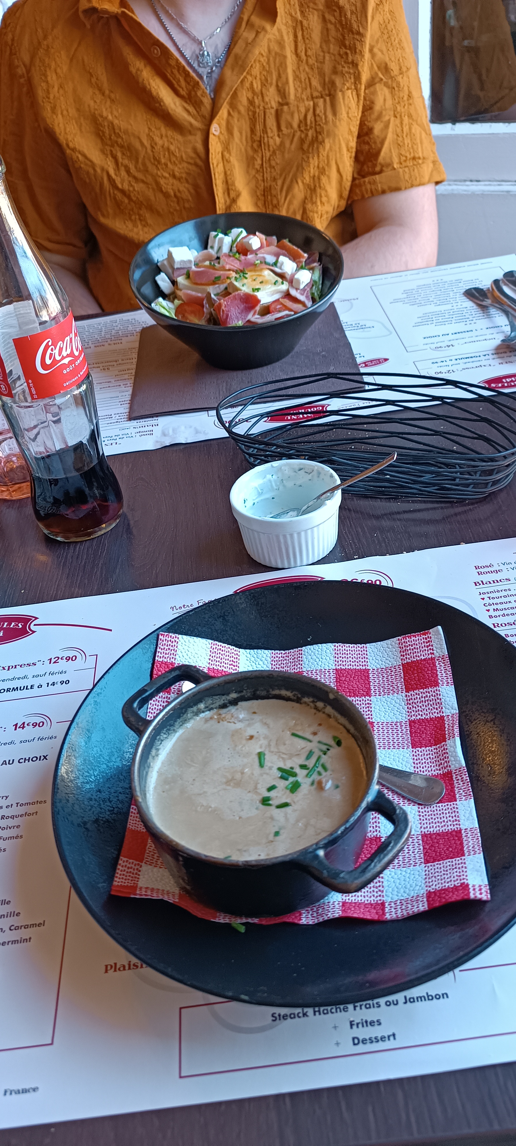Repas très copieux. Nous avons prit la formule entrée + plat ni moi ni ma compagne n'avons pu terminer nos assiettes malgré que ce soit délicieux. La petite liqueurs de cerise offerte en fin de repas est très agréable pour la digestion. Serveur mignon !