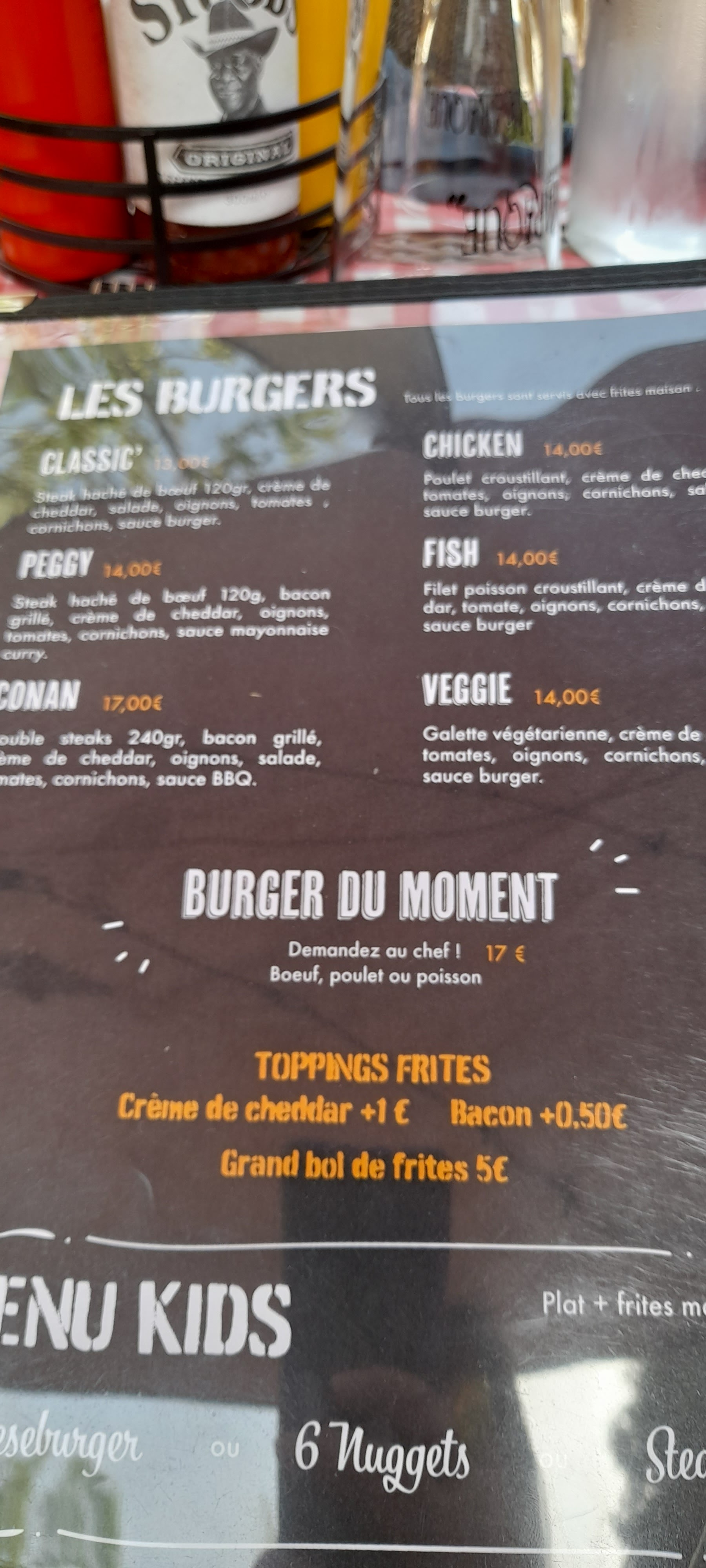 Le cadre et vraiment très sympa, bonne ambiance ont s'y sent bien. Le personnel est très agréable rien a dire. Cependant il y as trop peu de choix sur la carte burger, 5 choix qui n'ont pas de grandes différences. Viande cheddar tomate sauce, je trouve que ça manque d'ingrédients. Ça manque de fromage, de légumes grillés ou autre, manque d'originalité sur les burgers. Seulement 3 choix de dessert.p