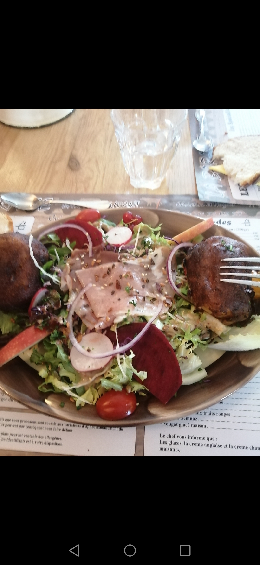 Je n'ai pas mangé mais je suis aller leurs demandé si il était possibles de remplir ma gourdes. Ils ont refusé... Je comprend que cela ne les arrangeant pas mais d'autres restaurants en servent alors qu'ils sont dans de endroits bien plus fréquenté par les cycliste. Dommage...