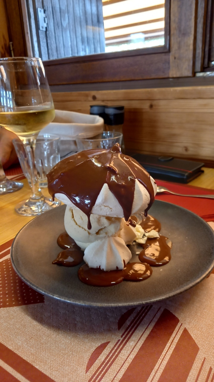 Accueil chaleureux, dîner en terrasse à réserver en pleine saison chaude, ou vous devrez de manger en intérieur, ce qui ne gâche en rien le repas. La déco est rustique et en lien avec la montagne donc de bon ton. Les assiettes sont bien garnies et savoureuses.