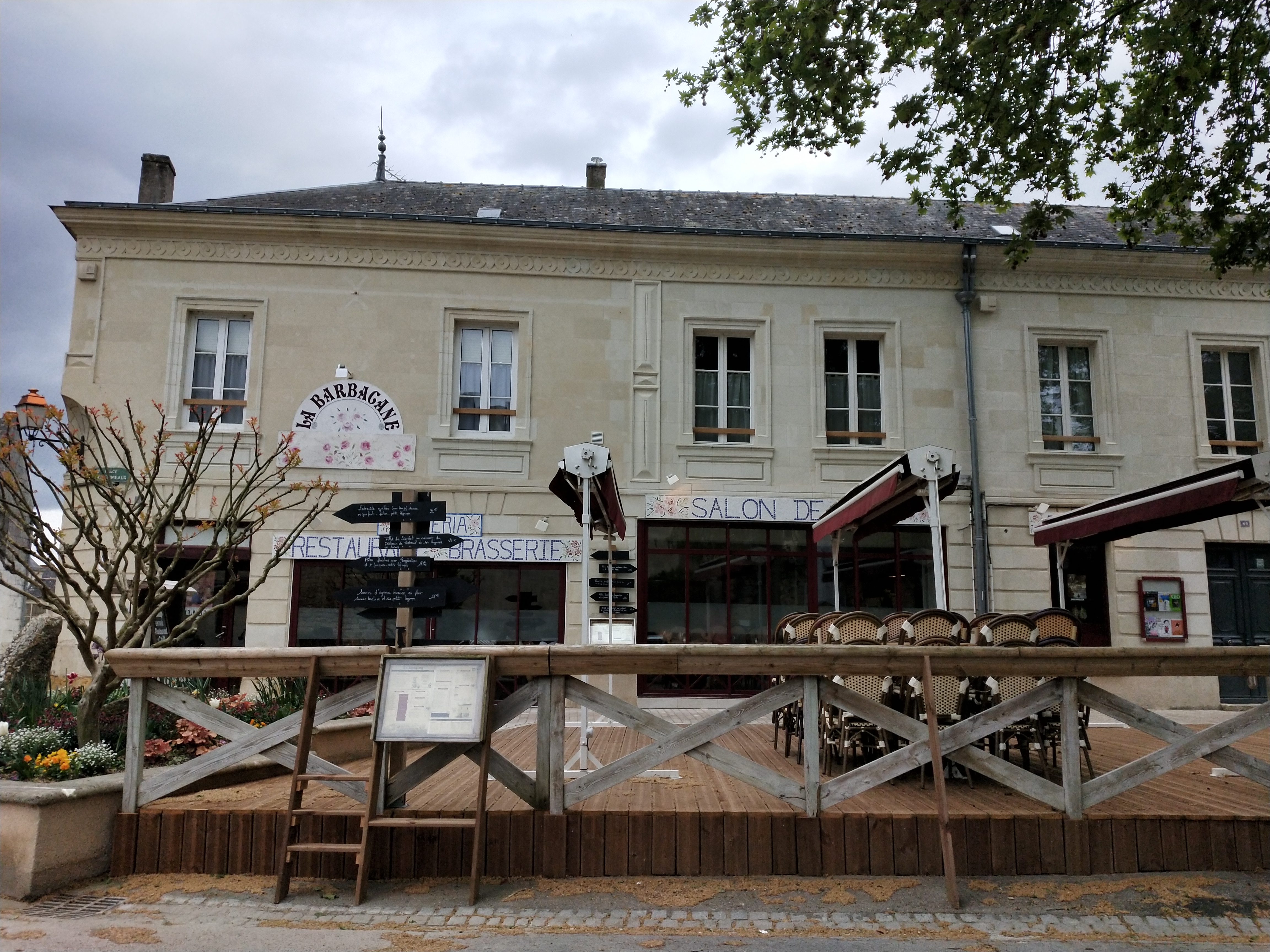 Quelle bel établissement en face du château de Montreuil Bellay. Nous y avons dégusté sur la terrasse ombragée une immense salade végétarienne composée des légumes et fruits de saison accompagnée d'un vin rosé de Saumur bien frais. Un grand moment de détente après la visite du château. Prix très démocratiques.