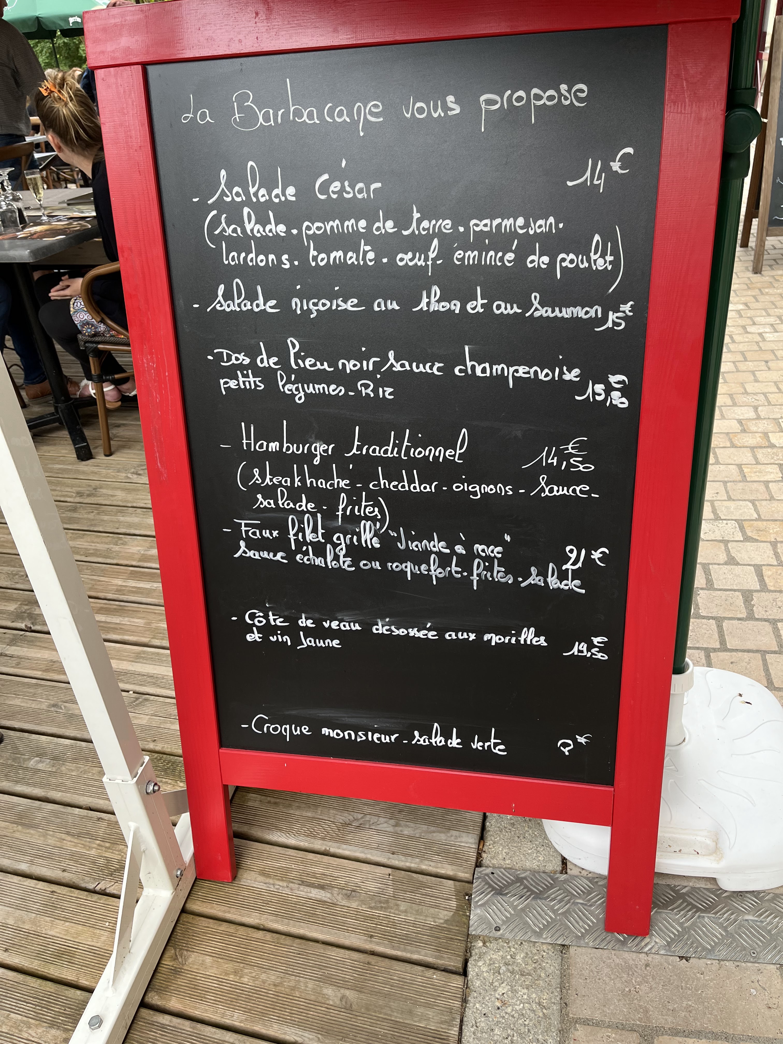 Aujourd'hui. Très bon déjeuner pour 3 adultes et une enfant. Plats frais, desserts agréables. Merci pour ce joli moment face au château