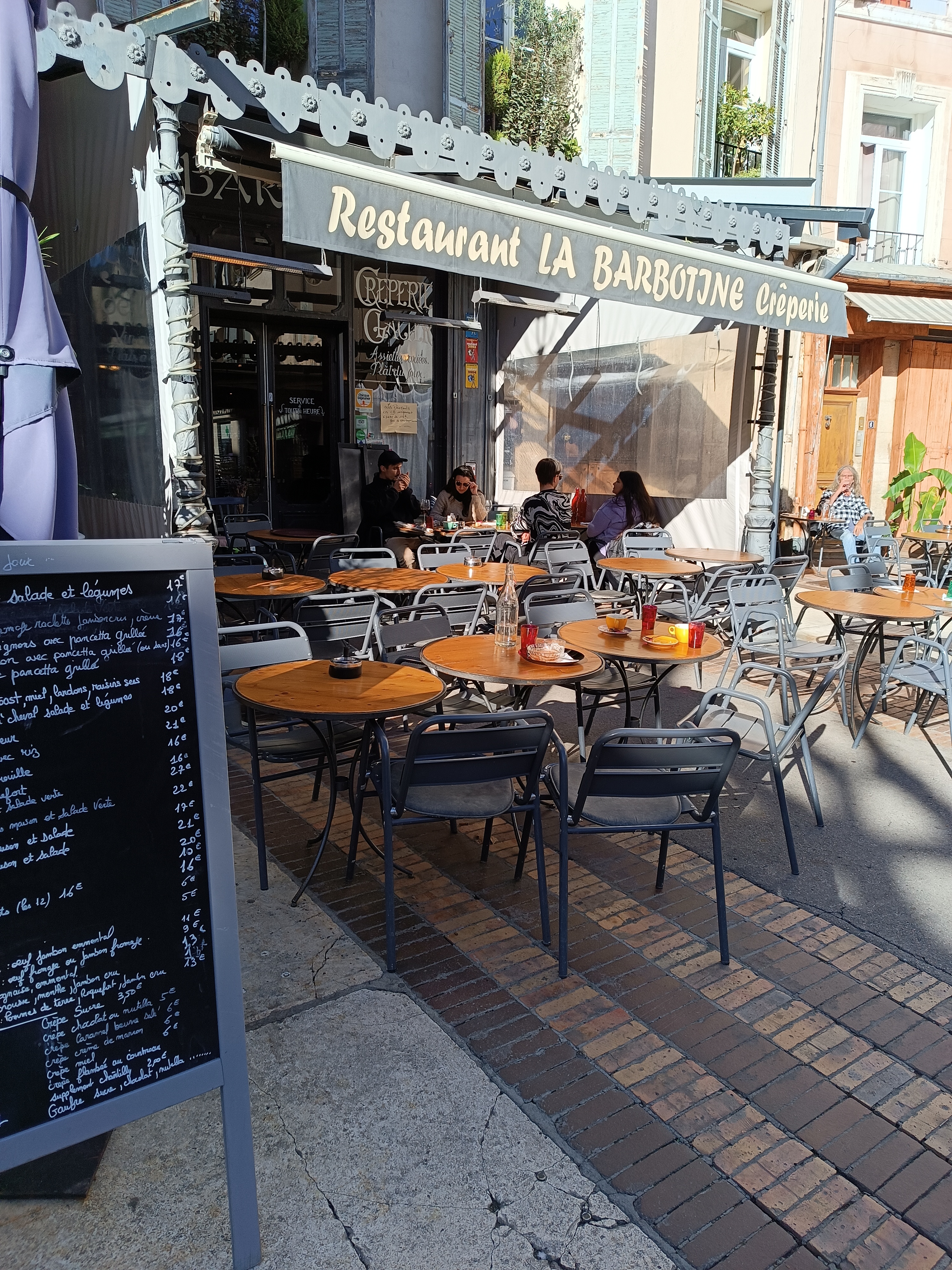 J'y suis arrivée un peu contrainte et forcée : aucun autre établissement n'est ouvert au centre de Manosque le lundi soir (les touristes apprécieront)... J'en suis repartie aux anges : la cuisine est faite par un vrai cuisinier, pas un mélangeur de sachets et de boites de conserves... Personnellement, je n'ai jamais mangé de salade césar aussi bonne et proche de la recette originale dans un restaurant. Merci la Barbotine.