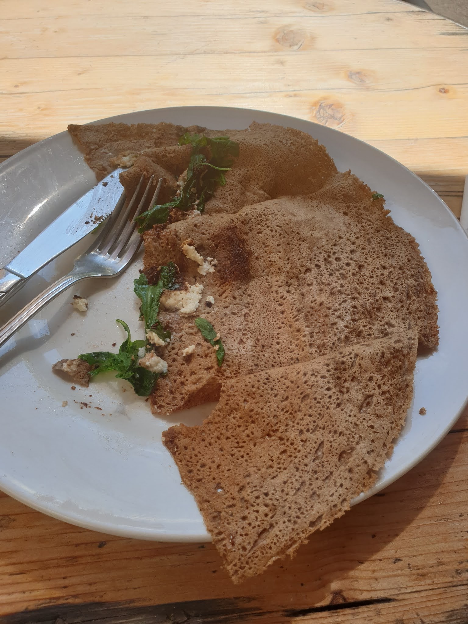 Super petite crêperie. Nous avons hébergé notre grand groupe sur la terrasse et nous avons vraiment fait sentir comme chez nous. J'ai servi les enfants immédiatement pour les occuper pendant que les adultes prenaient leur temps avec le menu et proposaient des jets d'eau pour la chaleur. Bonnes gallettes/crêpes et salades. Super glace. Personnel charmant et sympathique. Hautement recommandé.
