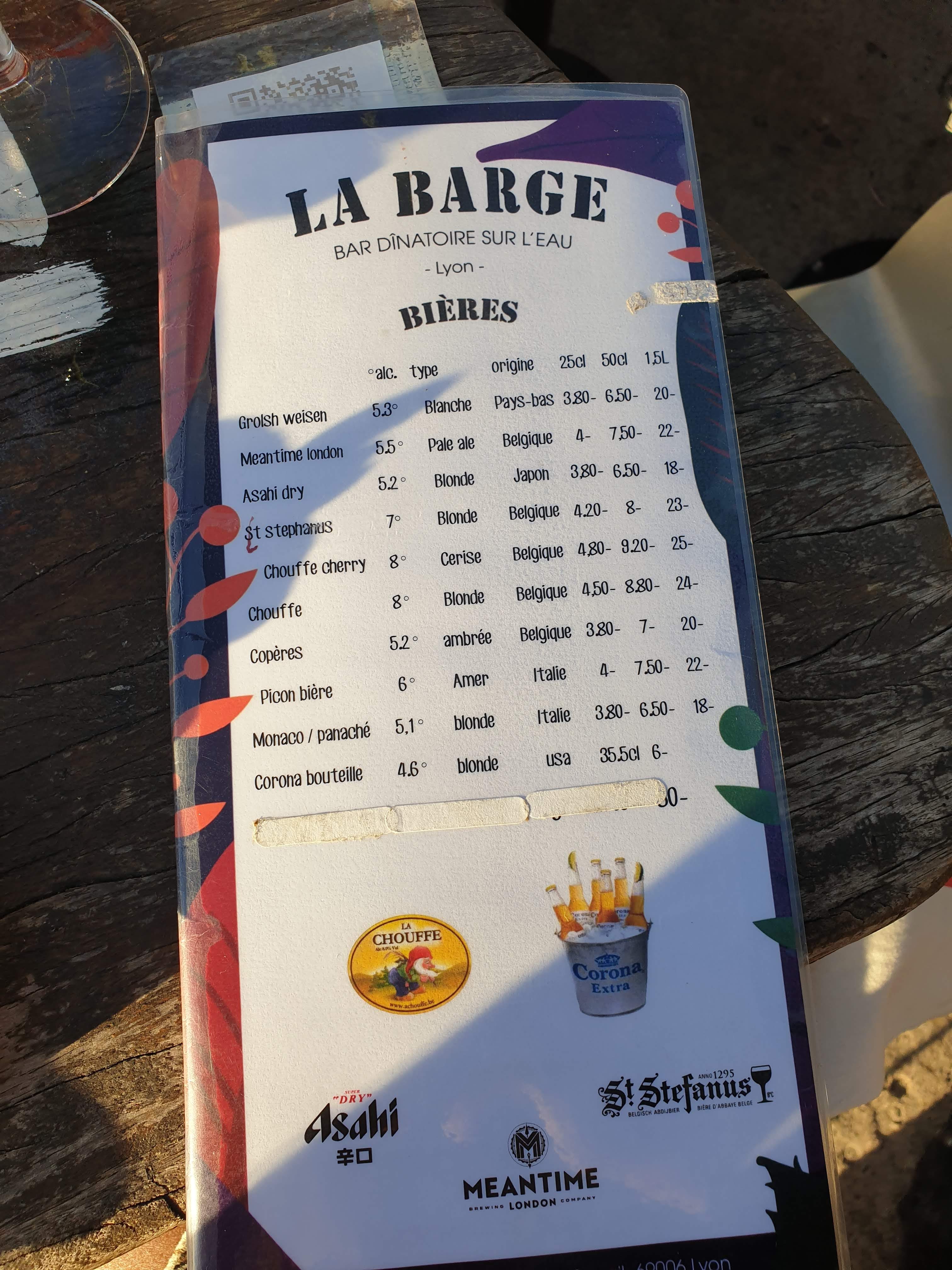Le lieu est très sympa sur la péniche on profite du beau temps et de la vue sur l'eau. Par contre il y a souvent la queue pour que les serveurs nous trouve une place. Il faut aller commender au bar et j'ai trouvé le service vraiment long. Gros bémols les prix sont vraiment tirés vers le haut 9,20€ la pinte de chouffe c'est vraiment pas donné même si le cadre est très agréable.