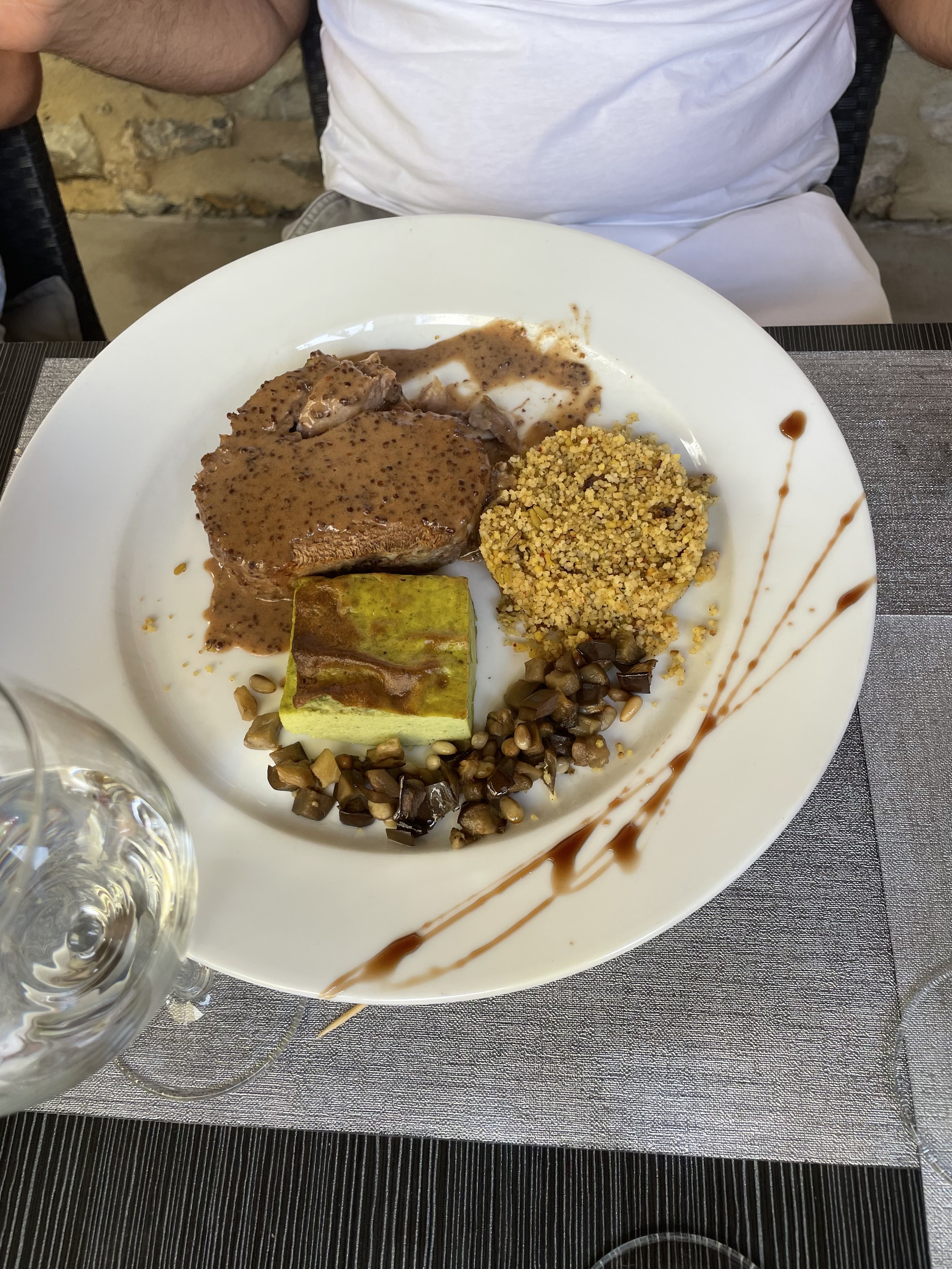 Restaurant bien situé dans une rue très calme dans le centre de Vaison-la-Romaine . Jolie terrasse et très belle salle bien décorée . Bon accueil du personnel . Menu Angèle à 30 euros pour nous avec une mise en bouche bien sympa (Rillettes de lapin ). De bons ravioles crème de truffe en entrée, suivis d'un excellent paleron de boeuf braisé et crème de romarin . Et une faisselle bien généreuse en dessert ! Des plats superbement cuisinés, bien présentés et copieux . Service professionnel et convivial . Un excellent restaurant au très bon rapport qualité-prix .