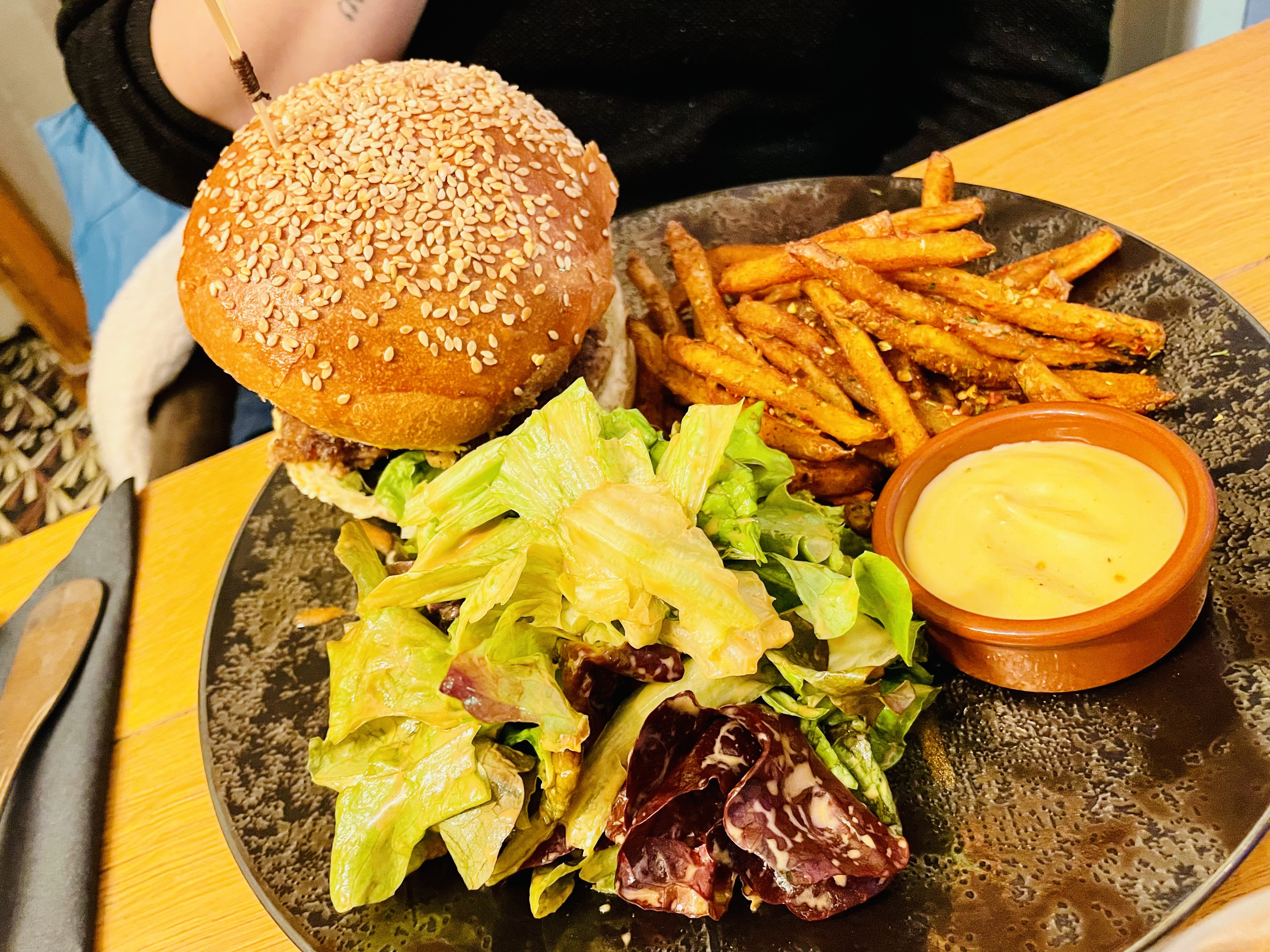 Déjeuner au bord de Seine. Burger extra. Recommande