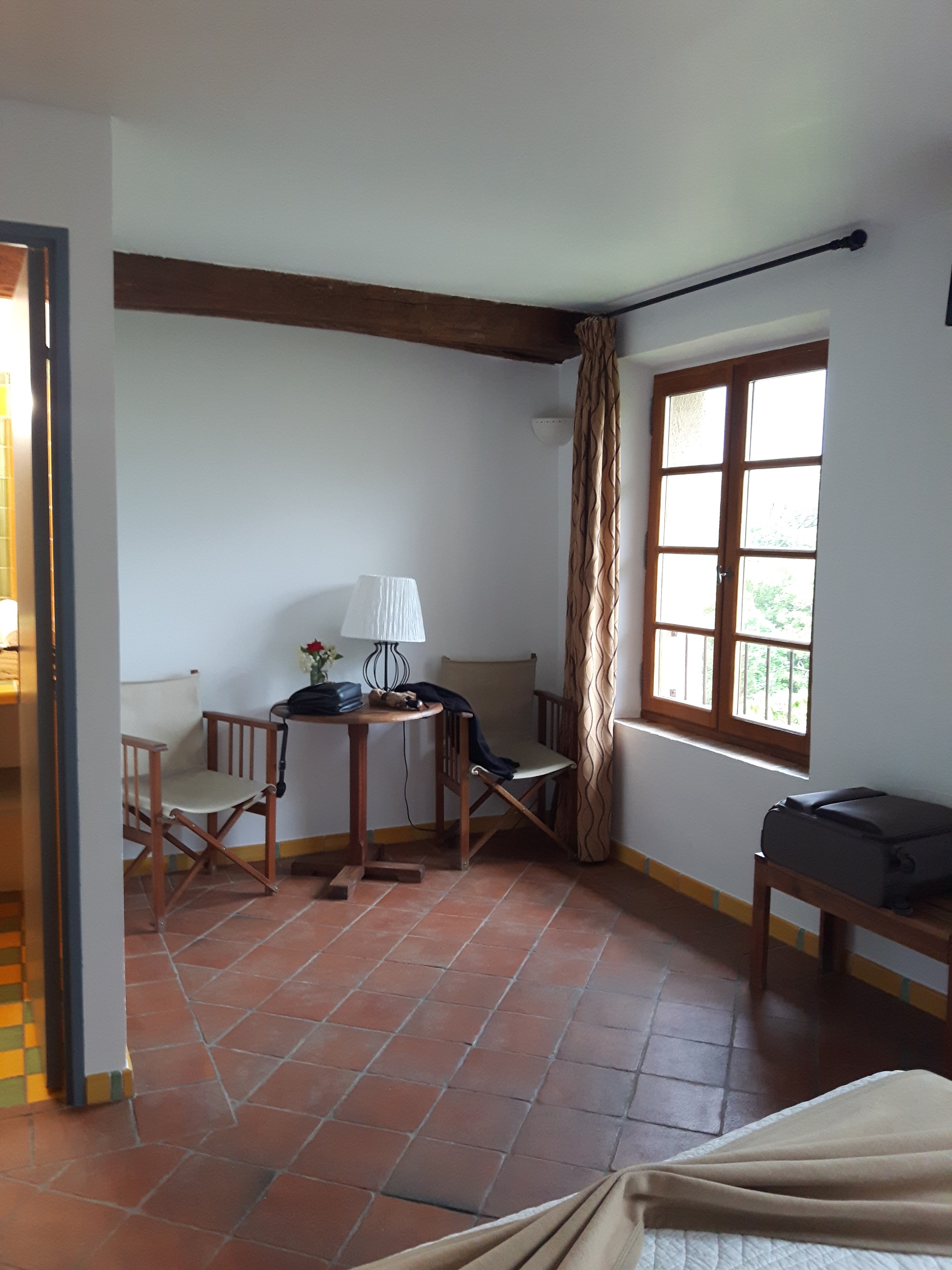 Tout d'abord, si vous êtes en Provence pour le tourisme, vous devriez visiter Moustiers. C'est une ville belle et pittoresque. L'hôtel est agréable. Nous avons pu choisir notre propre chambre, ce qui était bien car elles sont toutes différentes. Le lit était bon. C'est agréable d'avoir une bouilloire et un réfrigérateur dans la chambre. La climatisation était un peu bancale - elle était bien réglée quand nous nous sommes couchés mais la chambre était très chaude et étouffante quand nous nous sommes levés. Le petit déjeuner était bon.