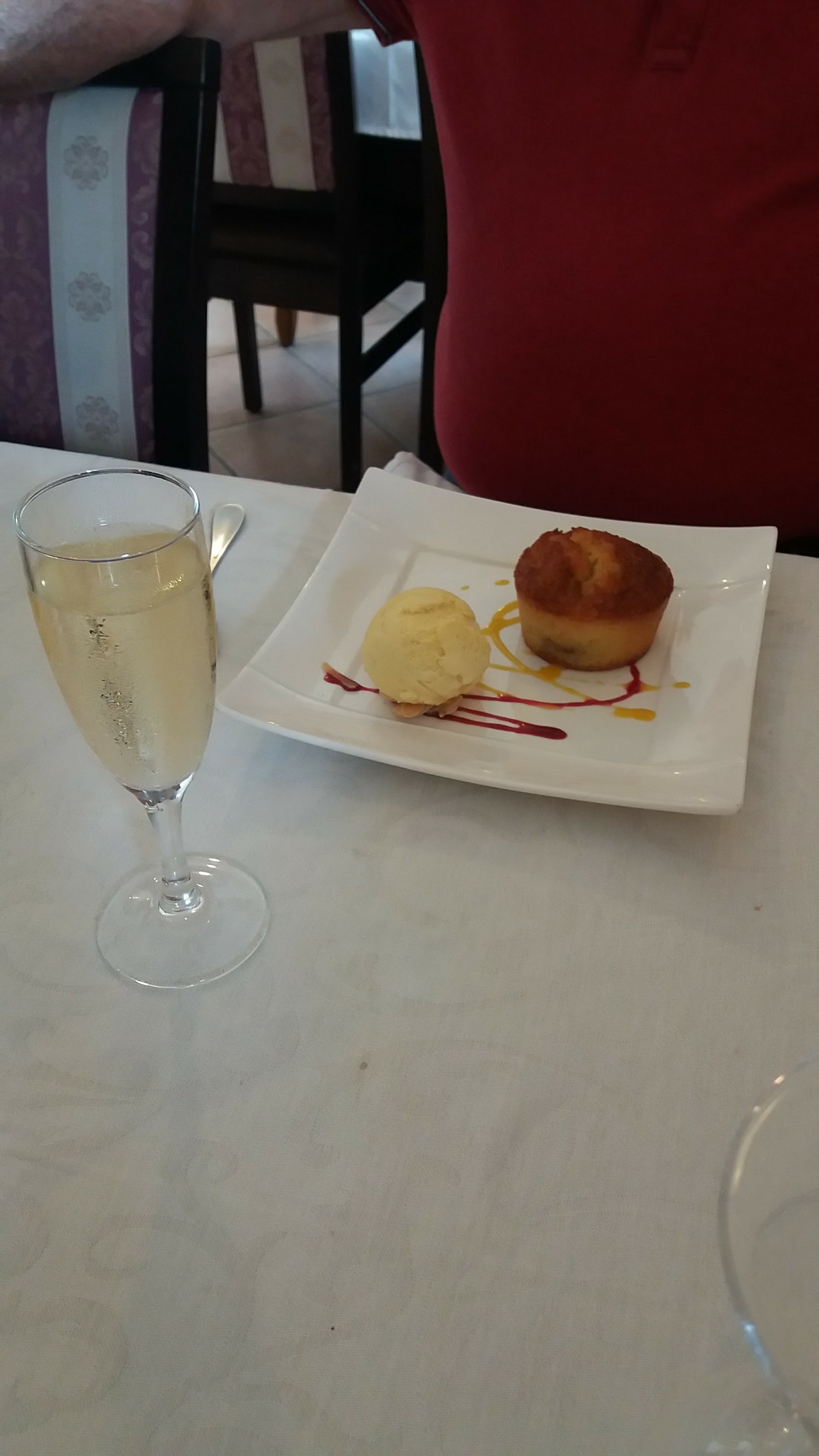Table pour 2 personnes réservée pour notre anniversaire de mariage. Arrivé sur la place, la table est prête. Une fois installés la serveuse prend la commande des apéritifs servis rapidement avec tapenade très bonne. Pendant l’apéritif elle revient prendre les menus. Jusque là tout est ok. Nous y avions bien mangé, bien que l’on se doute que les mets soient préparés à l’avance. Et mit dans l’assiette à la demande. Le gros reproche que l’on peut faire c’est que bien que l’on soit bien servi avec le petit trou entre l’entrée et le plat, c’est la rapidité de service. Autant dans certains endroits on a le temps de voir pousser les fleurs, que là c’est limite si on a le temps de respirer. La rapidité c’est bien mais point trop n’en faut ! On pourrait avoir l’impression que le personnel cherche vous expédier. Faites y attention car cela n’est pas très agréable.