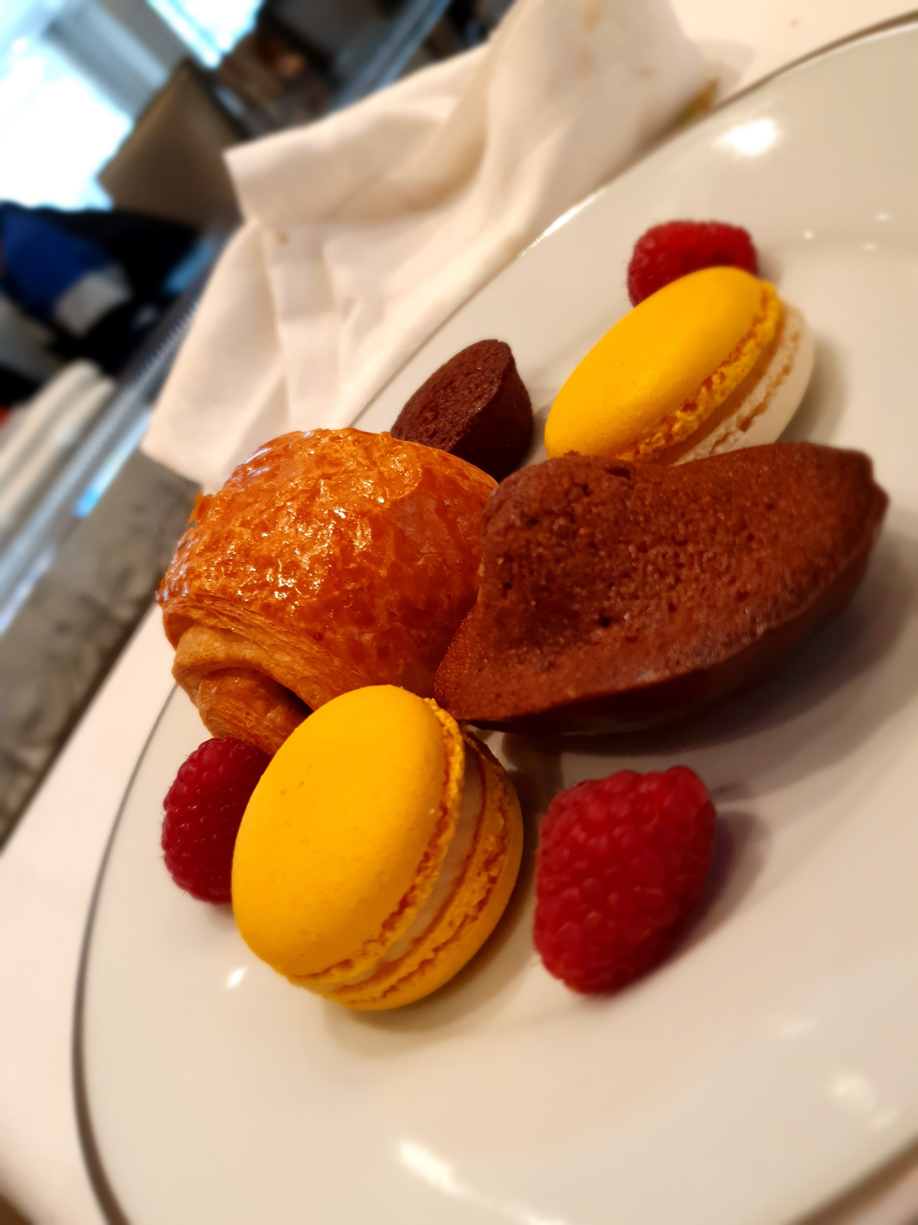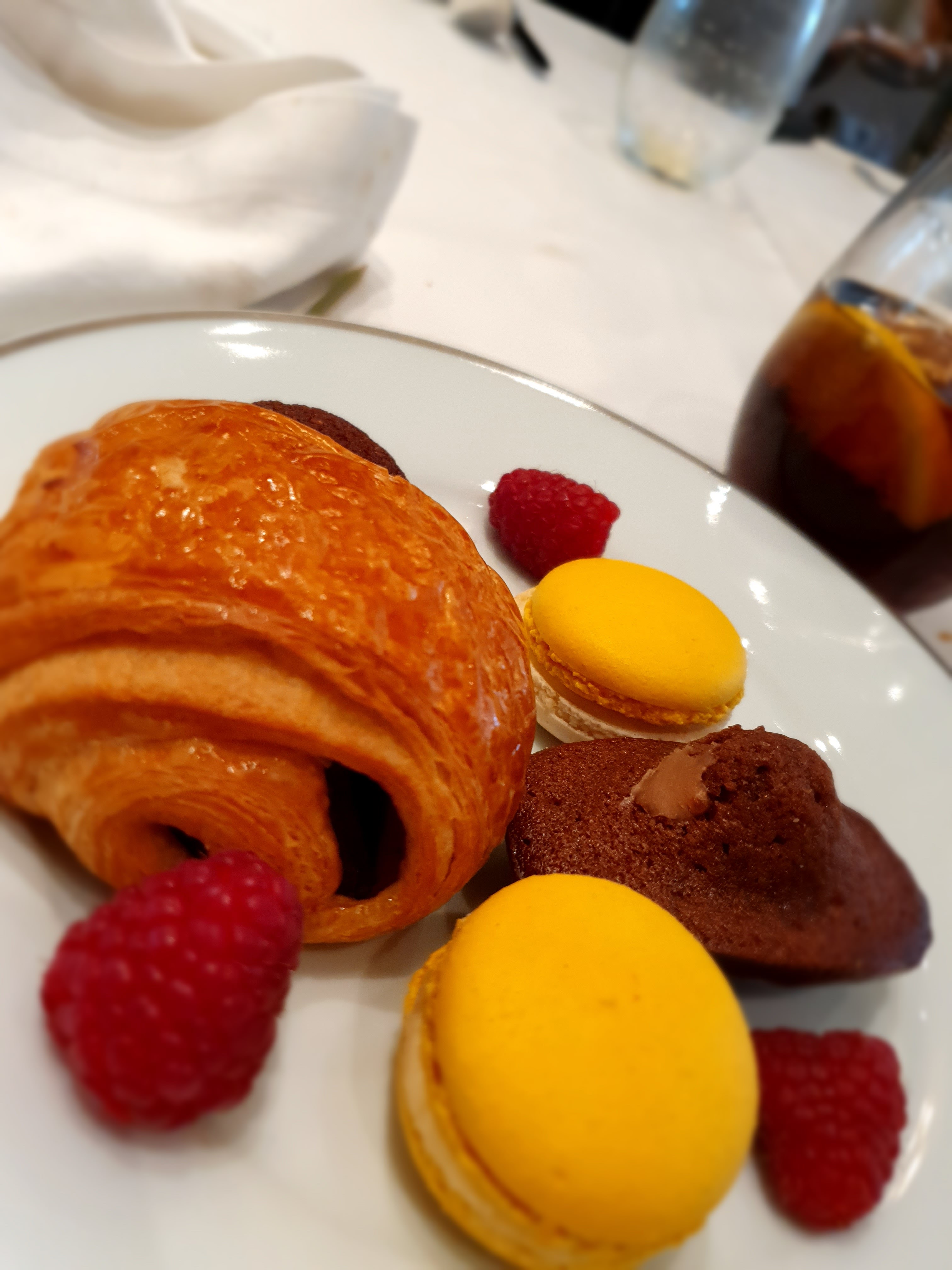 Aujourd'hui on revient pour un petit déj 😍🩷, car pendant notre mariage 💒 chez Shangri-la l'année avant, on a peu de temps pour manger. On a goûté au buffet des fruits de mer 🦞 avec caviar 🐟🥚, pains 🍞 perdus et homard, les pulpes, le risotto aux truffes 🍄, pleins de fromage 🧀, bcp de création récente de dessert de Maxence Barbot 😍. Il n'y a pas de bruit grâce à la grande distance entre les tables ☺️. Tout les boisson étaient inclus dans le prix. On a aussi un bon de réduction de 25%. ☺️ C'est parfait 🤤😋.