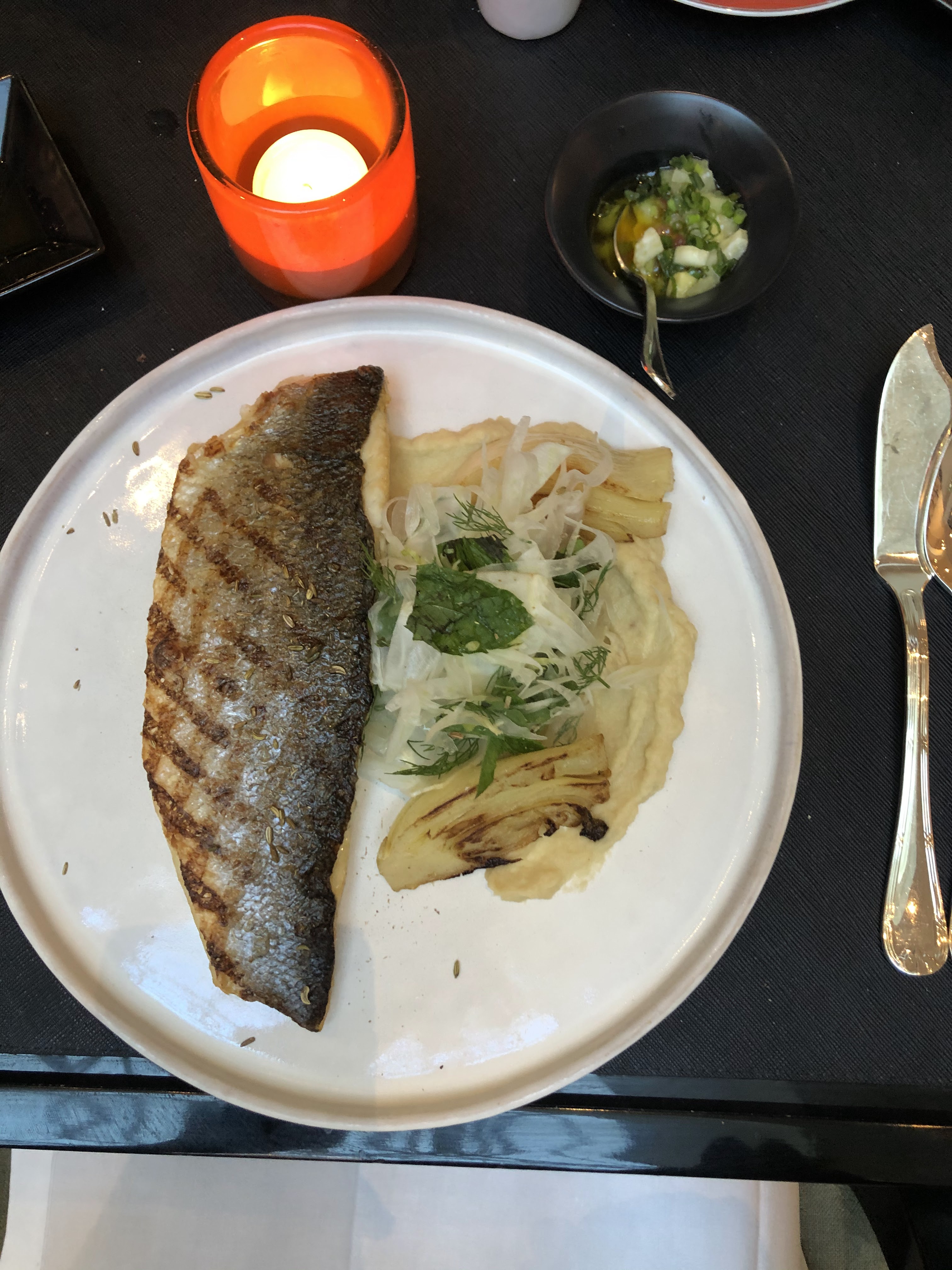 J ai commandé une lotte. J'ai eu deux petits bouts de poisson . J' ai cherché l accompagnement. Le plat était à peine tiède et ce pour 48€. (56€ eau incluse) J' ai payé la très jolie décoration.