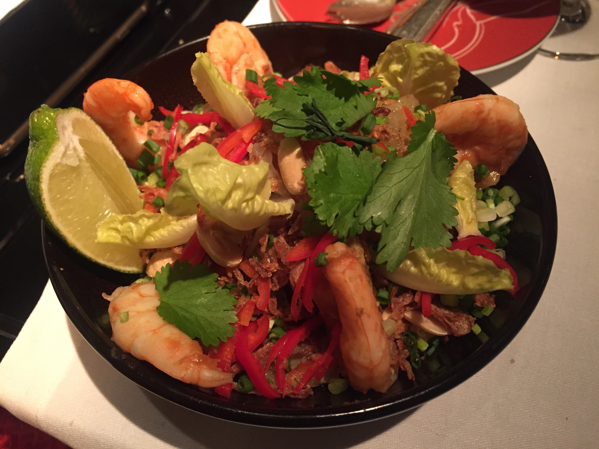 La déco du restaurant est jolie mais peu viellotte un peu passé à mon goût . Ambiance d’un restaurant d’hôtel. Calme. Le serveur est gentil et souriant mais il oublie d’apporter la petite table pour mon sac à main. Ma fille a porté le tabouret ! Ils s’en aperçoivent regarde la scène et nous demande si nous avons un problème mais ne réagissent pas en reprenant le tabouret des bras de ma fille ! Au niveau des plats, suis un peu déçue par les plats de la carte. On a retrouvé des grands classiques de la cuisine thaï. ( salade de papaye verte, tigre qui pleure, pad thaï) avec quelques propositions de plats de la gastro française comme le confit de foie gras … Je m’attendais pour un restaurant de ce standing à des plats plus revisités une proposition plus audacieuse, créative . Suis un peu déçue. Au goût, c’est correct mais sans plus. Disons que j’ai mangé des thaï bien meilleurs dans la capitale. Ma fille a eu son menu enfant. C’est super d’avoir à la carte des menus enfant mais pour autant mettre de la mayonnaise industrielle qd vous payez entre 30 et 40 euro vos plats. Ce n’est pas sérieux ! Quant aux frites, je ne suis pas certaine que ce soit des frites fraîches… Le serveur est gentil agréable mais un peu gauche renversé en débarrassant. je suis une cliente facile et ne me plaint pas…Une cliente pointilleuse aurait fait une petite esclandre. il oublie de servir de l’eau, laisse la bouteille fermée. Il a de la chance mais fait trop d’erreurs pour un endroit de ce type