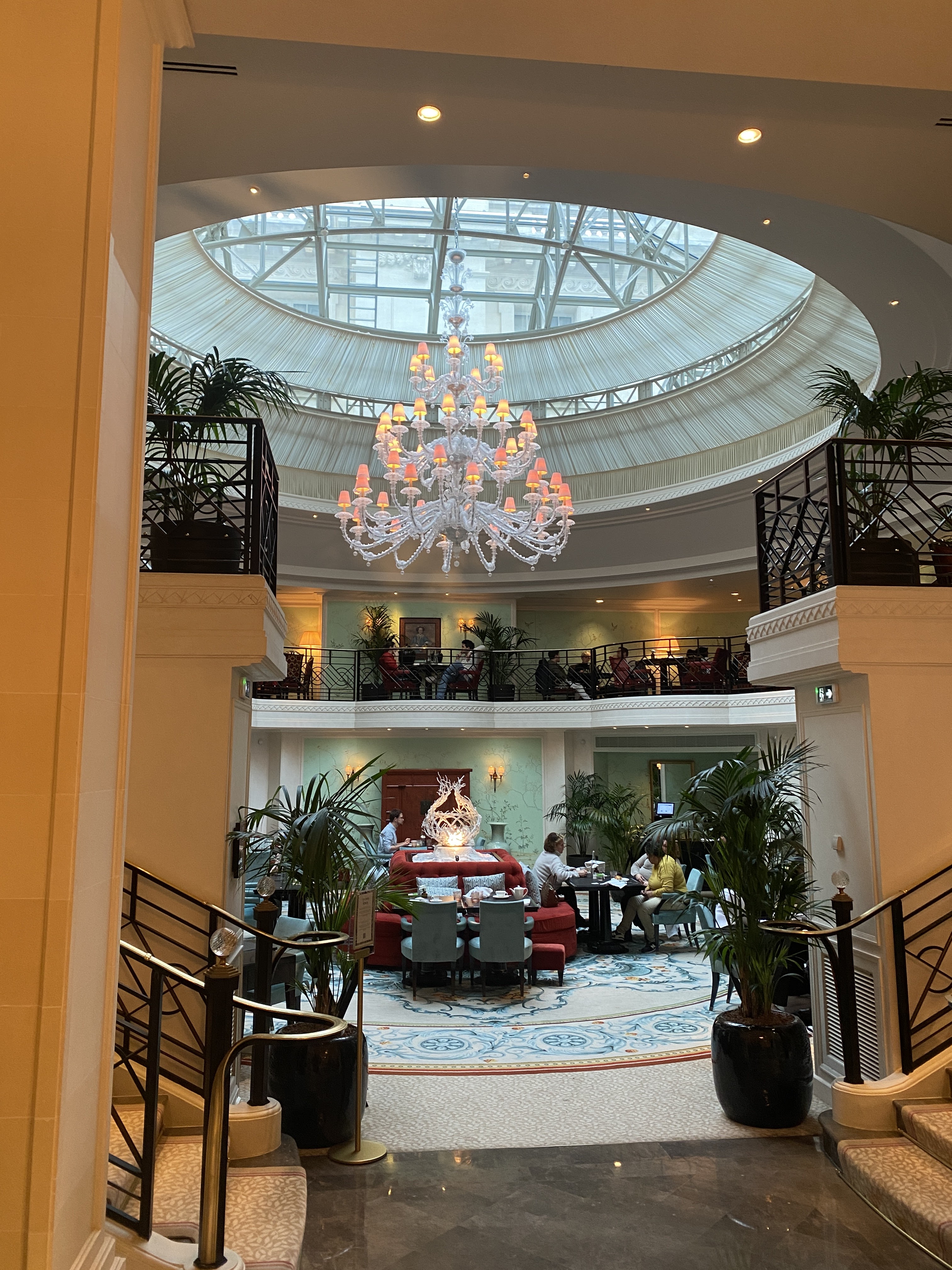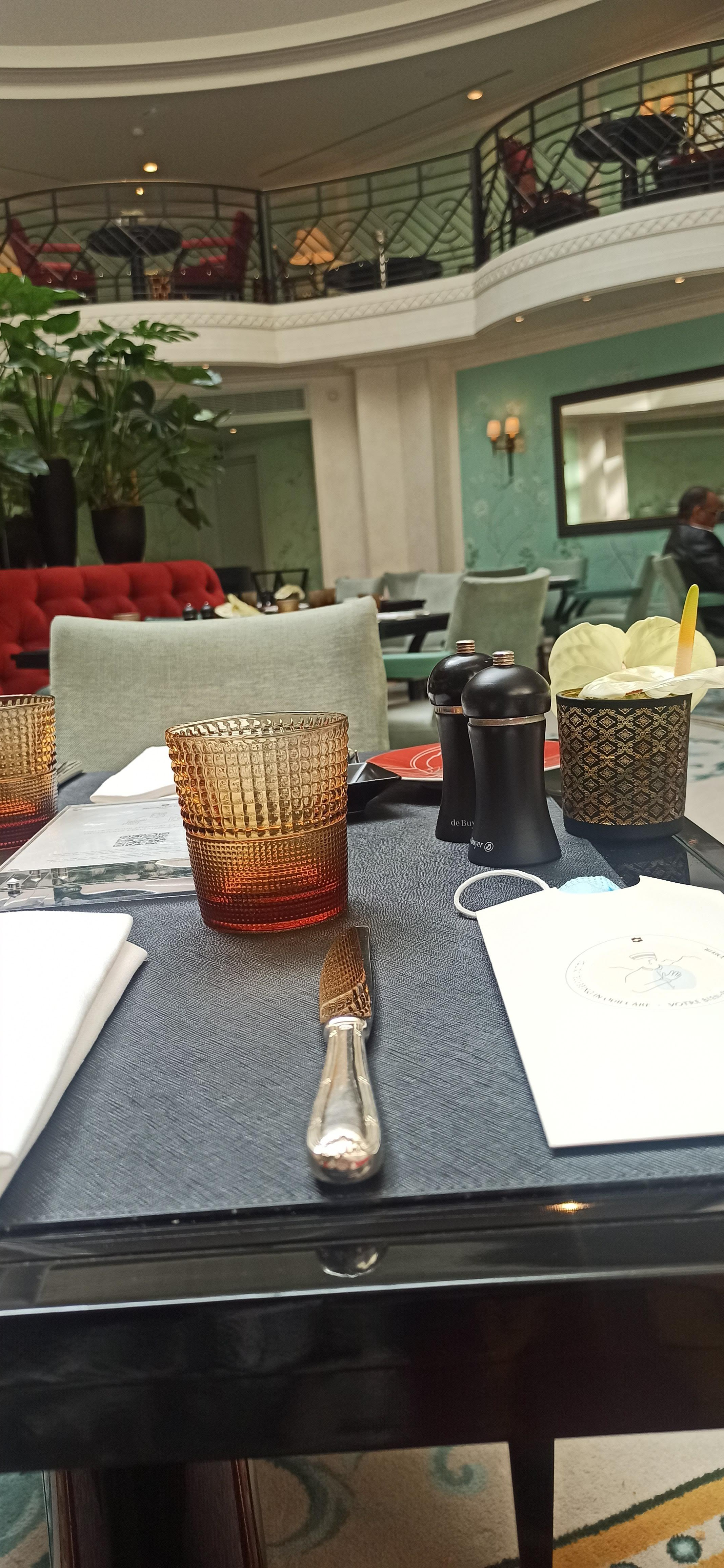 Expérience mitigée. Mon conjoint et moi sommes venus prendre un tea time dans ce lieu exceptionnel (réservation obligatoire quelques jours avant). Bon accueil par l'hôtesse mais légère déception en découvrant la salle et l'ambiance. Decoration jolie mais rien d'exceptionnel ; chanteuse et ses 2 musiciens couverts par le brouhaha général. Nous étions venus très bien habillés et nous nous sommes vite rendus compte qu'il était possible d'arriver en tenue très décontractée. Des enfants courraient sur le balcon situé à l'étage supérieur et un abat jour de lampe était de travers. Pas de possibilité de déposer ses affaires à l'entrée ou dans un vestiaire. En tant que palace, j'attendais un niveau de qualité et d'exigence supérieur. Après tout, one vient pas tous les jours pour profiter de bons moments dans un palace. Bien dommage. Sinon, Tea time excellent pour ce qui concerne les mets à savourer ; thé qui a peu d'intérêt (aucun goût). Il vous en coutera 80euros mais vous n'aurez plus faim jusqu'au lendemain. Pour la cuisine, je recommande d'aller goûter.
