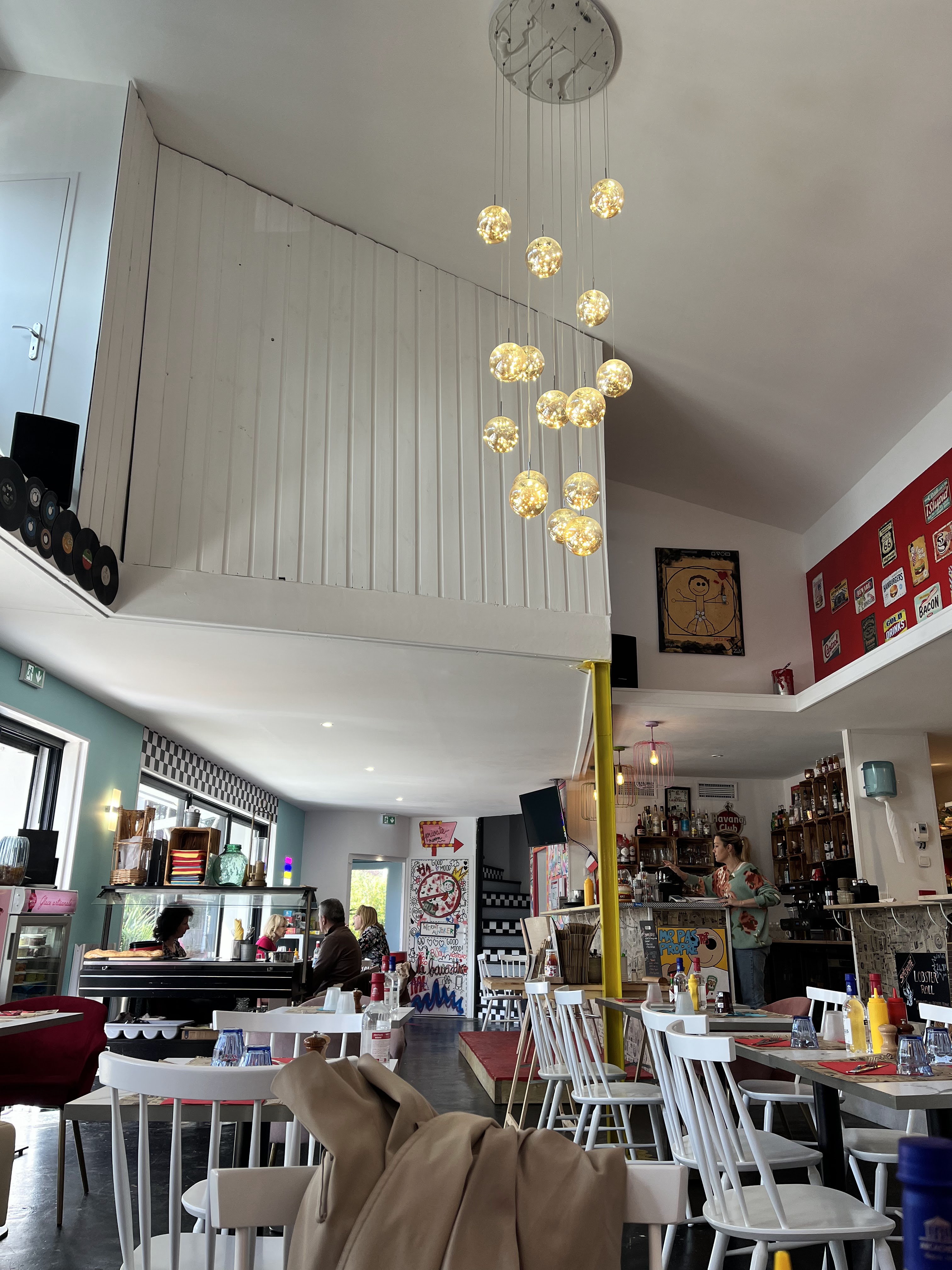 Le charme des Sixties, un lieu magique qui nous conduit outre-Atlantique. Un décor sans faute, pétillant comme Aurélie qui prend soin de nous, un univers joyeux et dépaysant. Ici, les vinyls placés au mur font écho à une playlist à l'image des pochettes de Santana, Mike Brant, Michael Jackson et les autres, disposées au dos d'élégantes banquettes de moleskine ivoire. Sur les grands murs blancs se côtoient des figures connues revisitées par un artiste du Street Art. Le blanc, la couleur et les saveurs dressées à l'assiette sous nos yeux par Nicolas. C'est beau, c'est bon, c'est propre et c'est naturellement accueillant. Ca scintille de joie jusqu'en terrasse et nous n'avons pas tout vu..... ! C'est pourquoi nous reviendrons, en force et en soirée parce que la mise en appétit de ce qui se trame nous regale déjà. Merci et belle montée en puissance ! See you soon 🍹🍹! Yanou et Alain