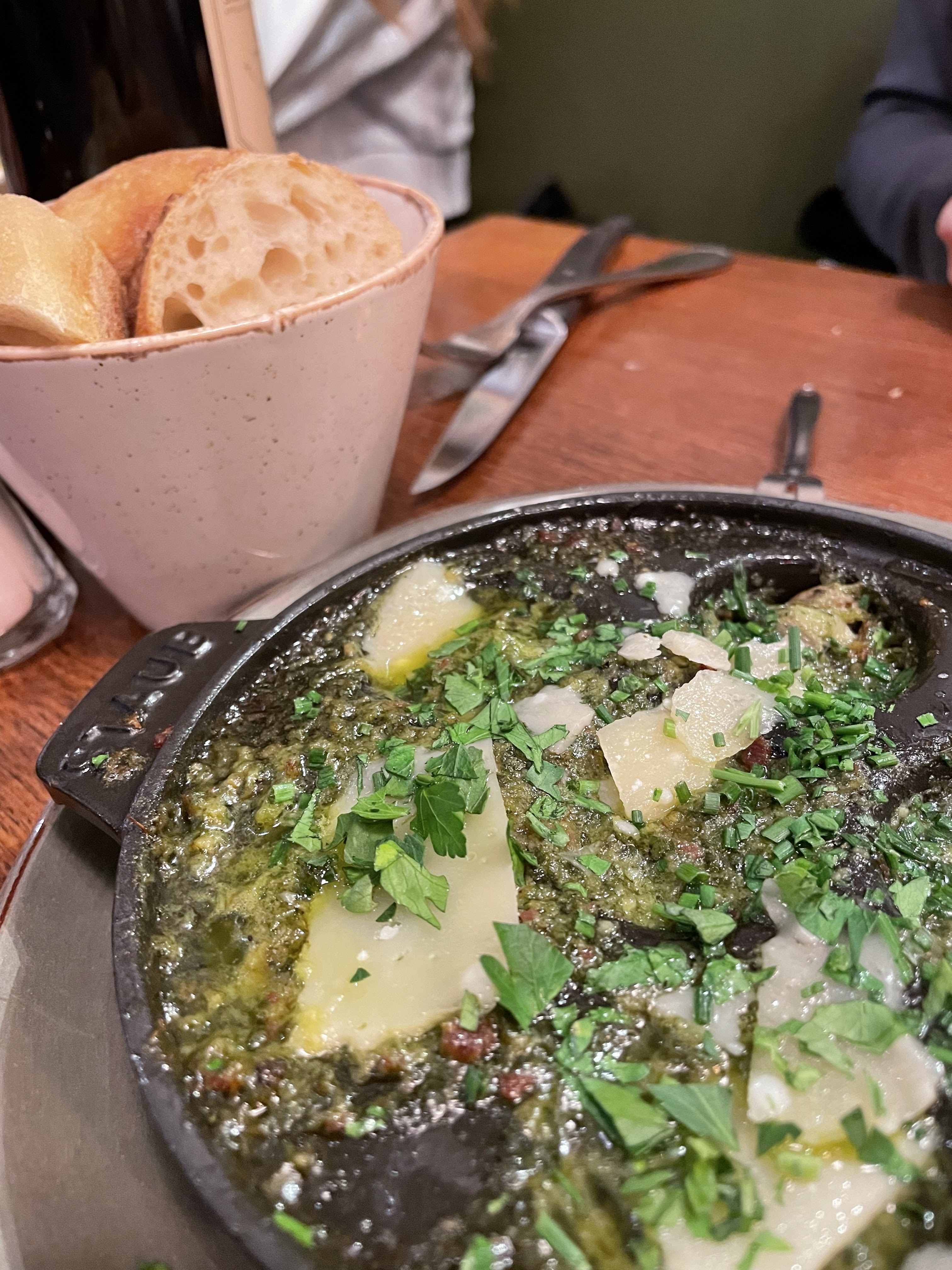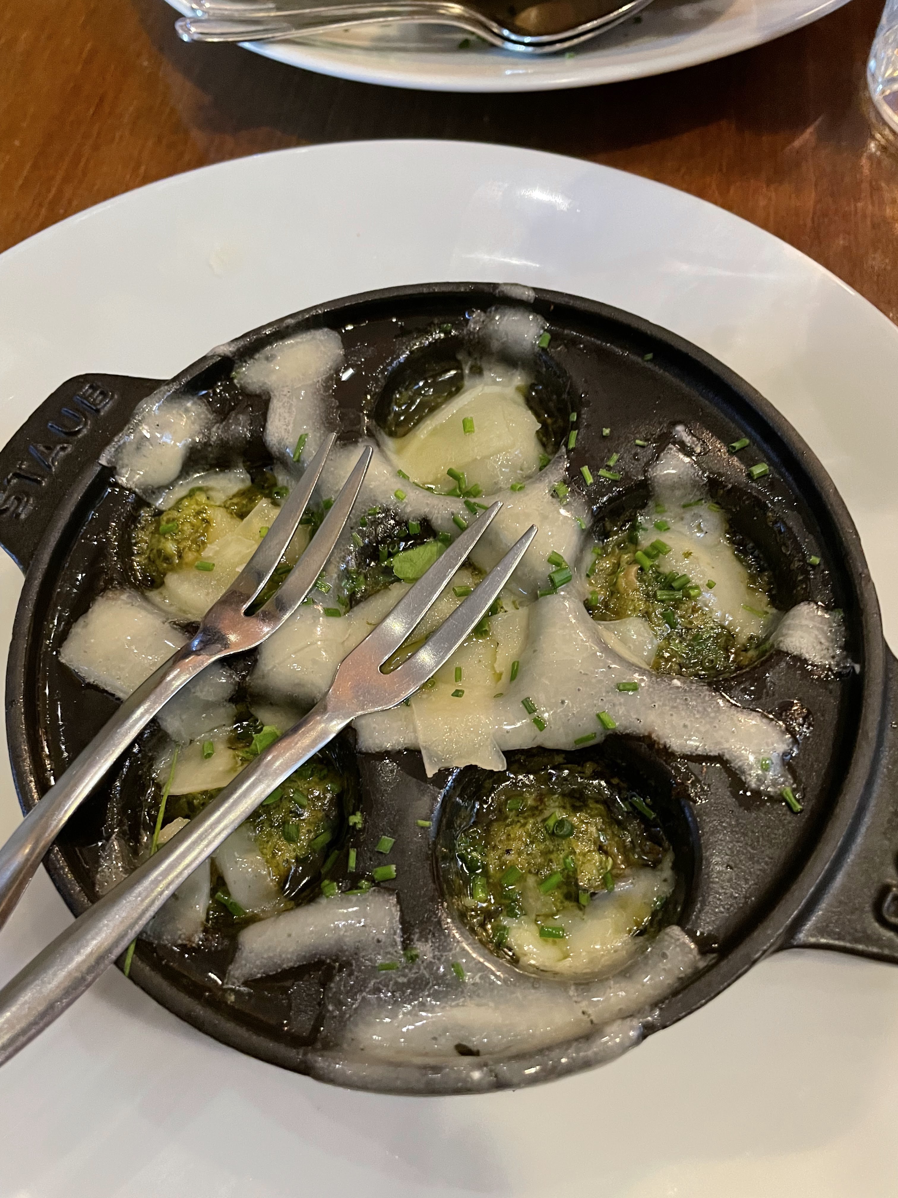 Un petit restaurant familial, où il faut s'asseoir près les uns des autres, mais dans une ambiance chaleureuse et conviviale. Faites une réservation. Le menu est intéressant, mais limité et un peu difficile pour un végétarien. Son choix était une bruschetta aux artichauts. C'était bon, mais étonnamment, c'était servi froid. Les escargots et les légumes gratinés étaient savoureux, tout comme le fondant au chocolat. Non, du tout cher.