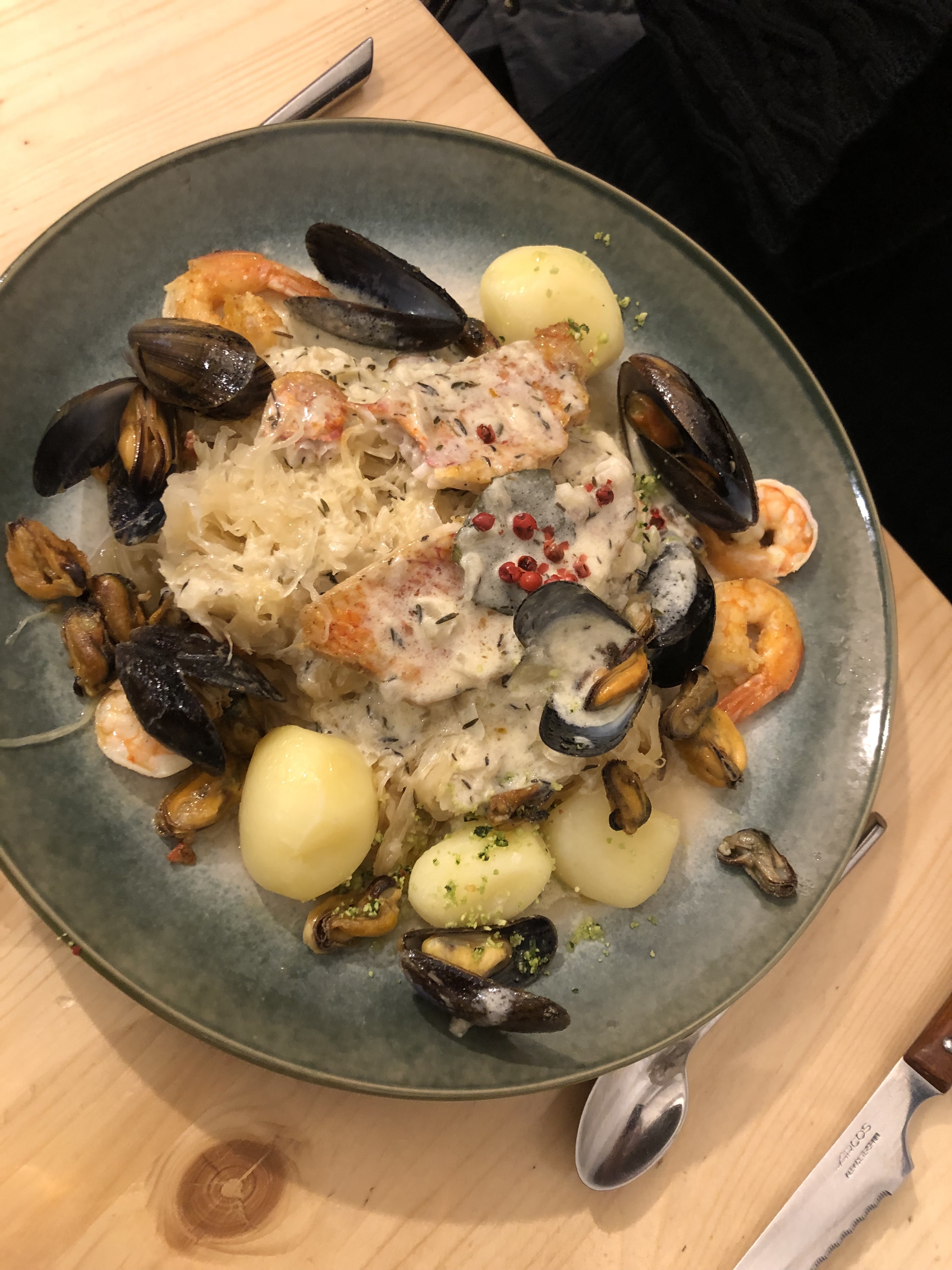 Choucroute aux 5 viandes ( excellente qualité) la meilleure que j’ai “dégustée” merci pour ce moment je recommande
