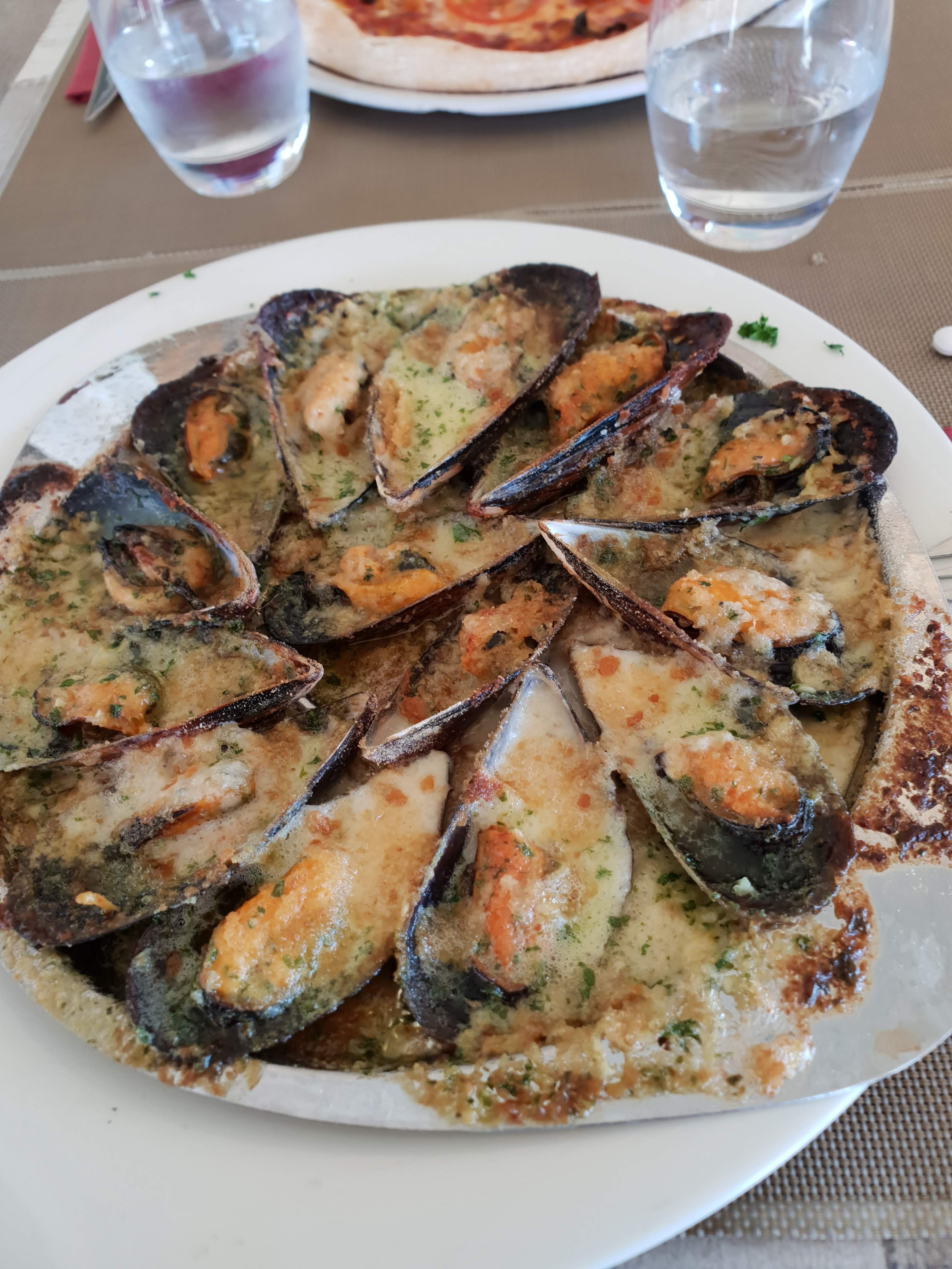 Très bonnes moules gratinées au Roquefort. Pour 12€ TB. En plus terrasse couverte ombragée avec de l air. Service sympatique en face de la mer