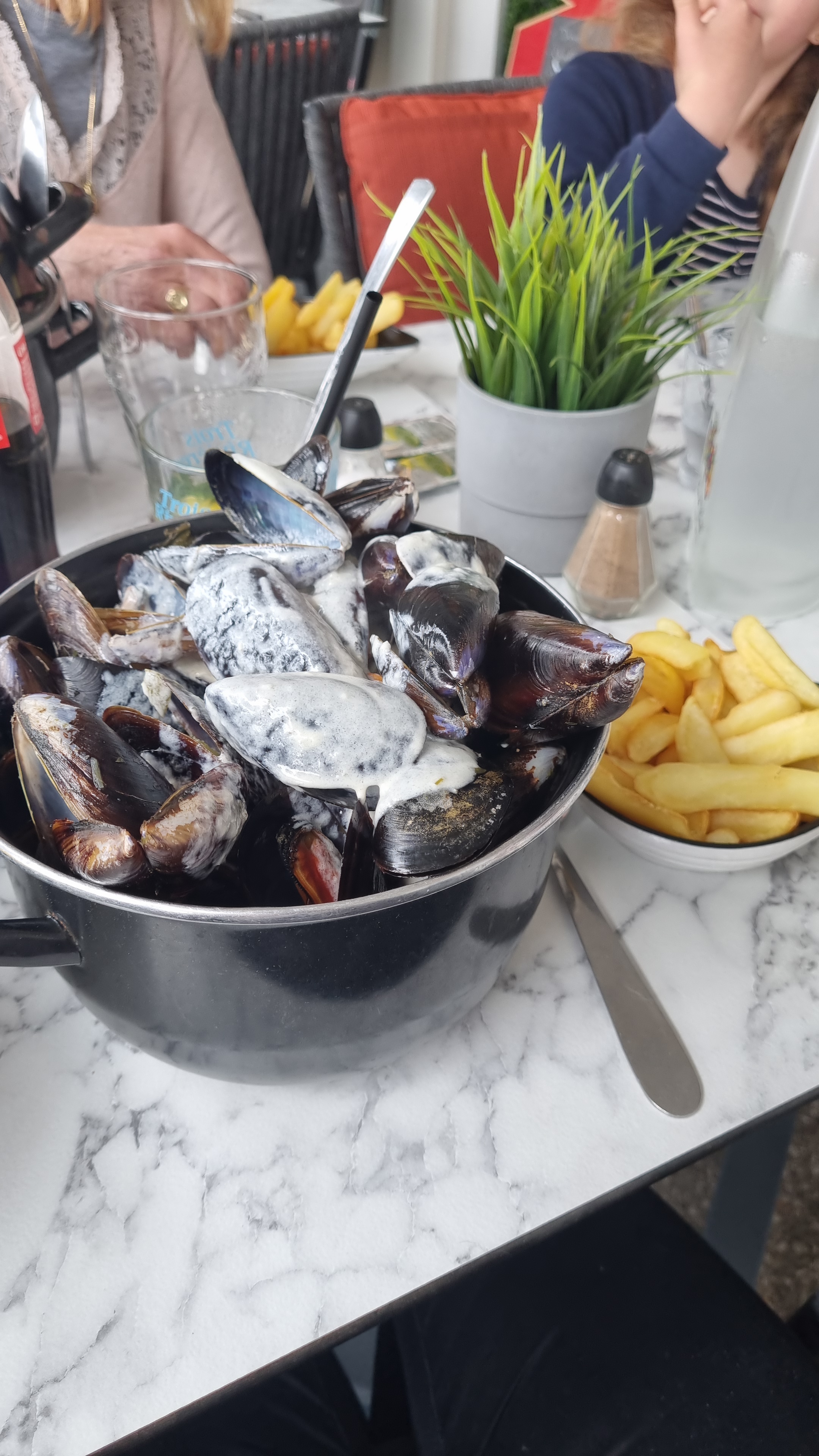 Cadre et serveuse sympathiques , moules à la crème voir photos 🙄
