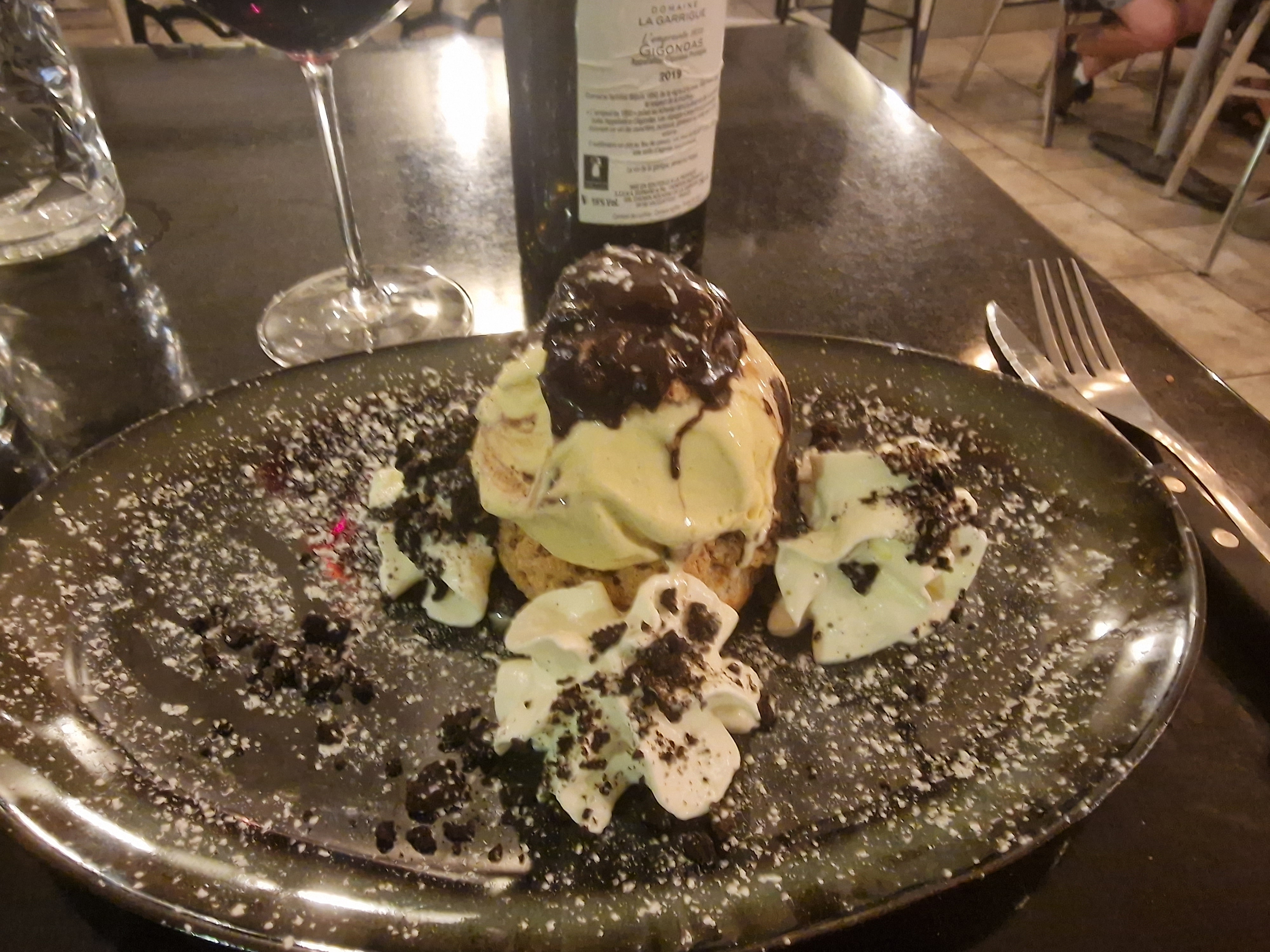 Service rapide et aimable. Le vin en carafe est plus que moyen, dommage au pied du Ventoux. La cuisine est passable à médiocre. La burrata est toute petite et pas bonne, la truffe sur le tartare sans goût, le steak lui-même était à peine assaisonné… Et la cuisine ferme à 21h. Donc passez votre chemin.