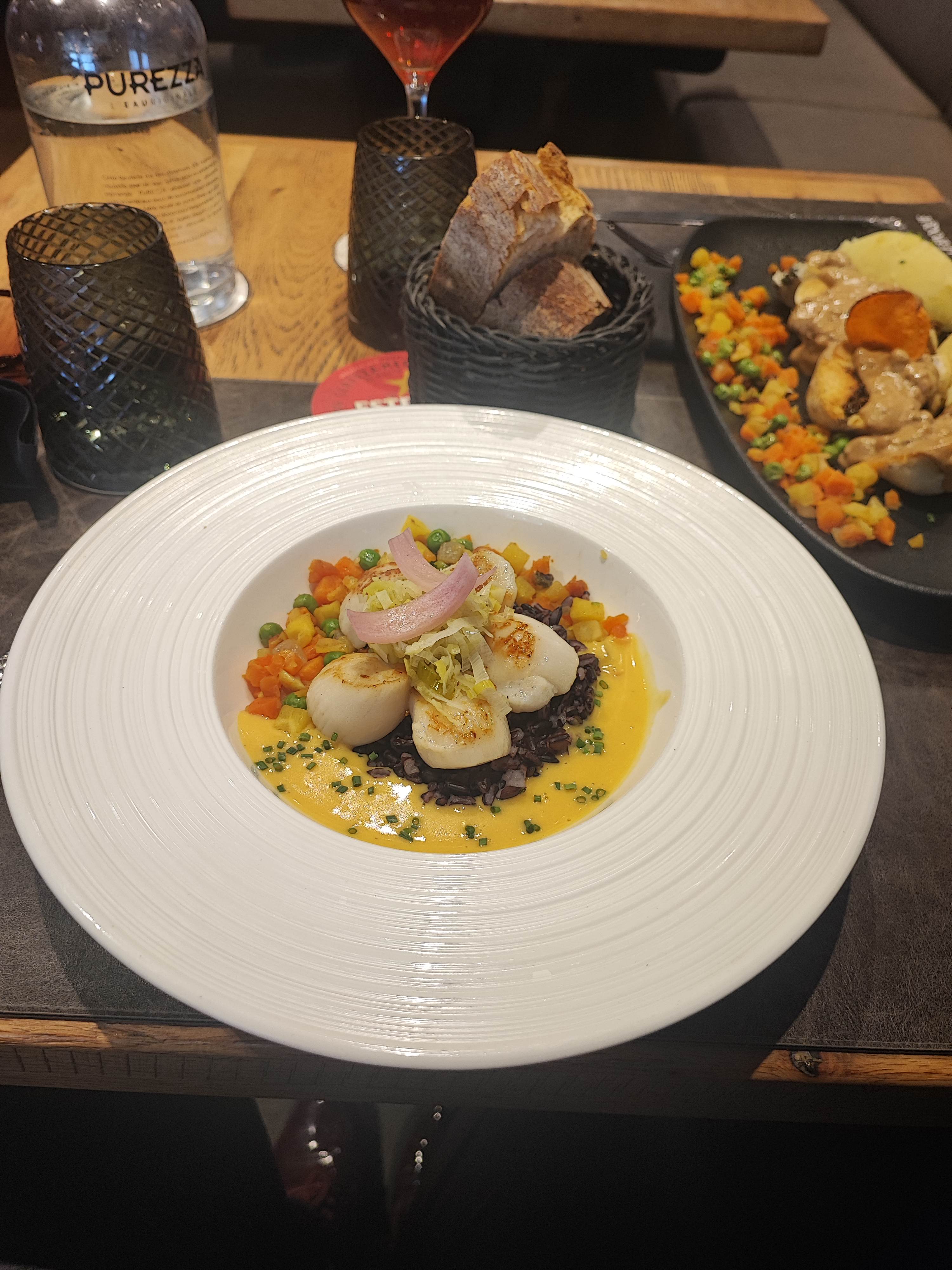 Noix de st jacques pour 30€. Ce n'était pas immangeable. J'ai fini mon assiette avec un goût amer de m'être faite berner... Petite note au serveur qui le pauvre était incapable de me dire ce qu'il y avait dans le plat avant qu'il n'arrive devant moi. L'ambiance est sympa...