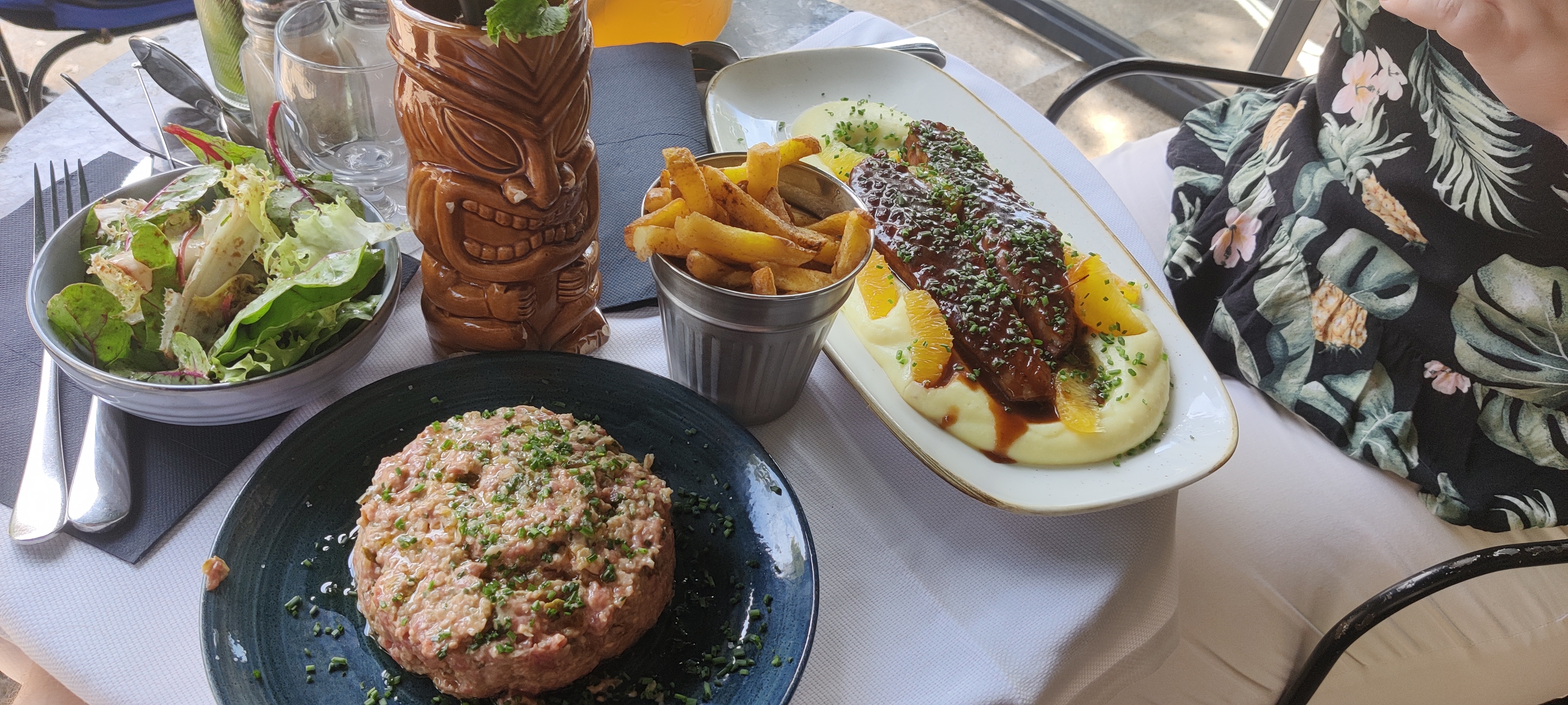 Terrasse agréable, service idem et aussi attentif que souriant, plats délicieux malgré une carte classique et un peu relevée en tarif. J’ai beaucoup aimé.
