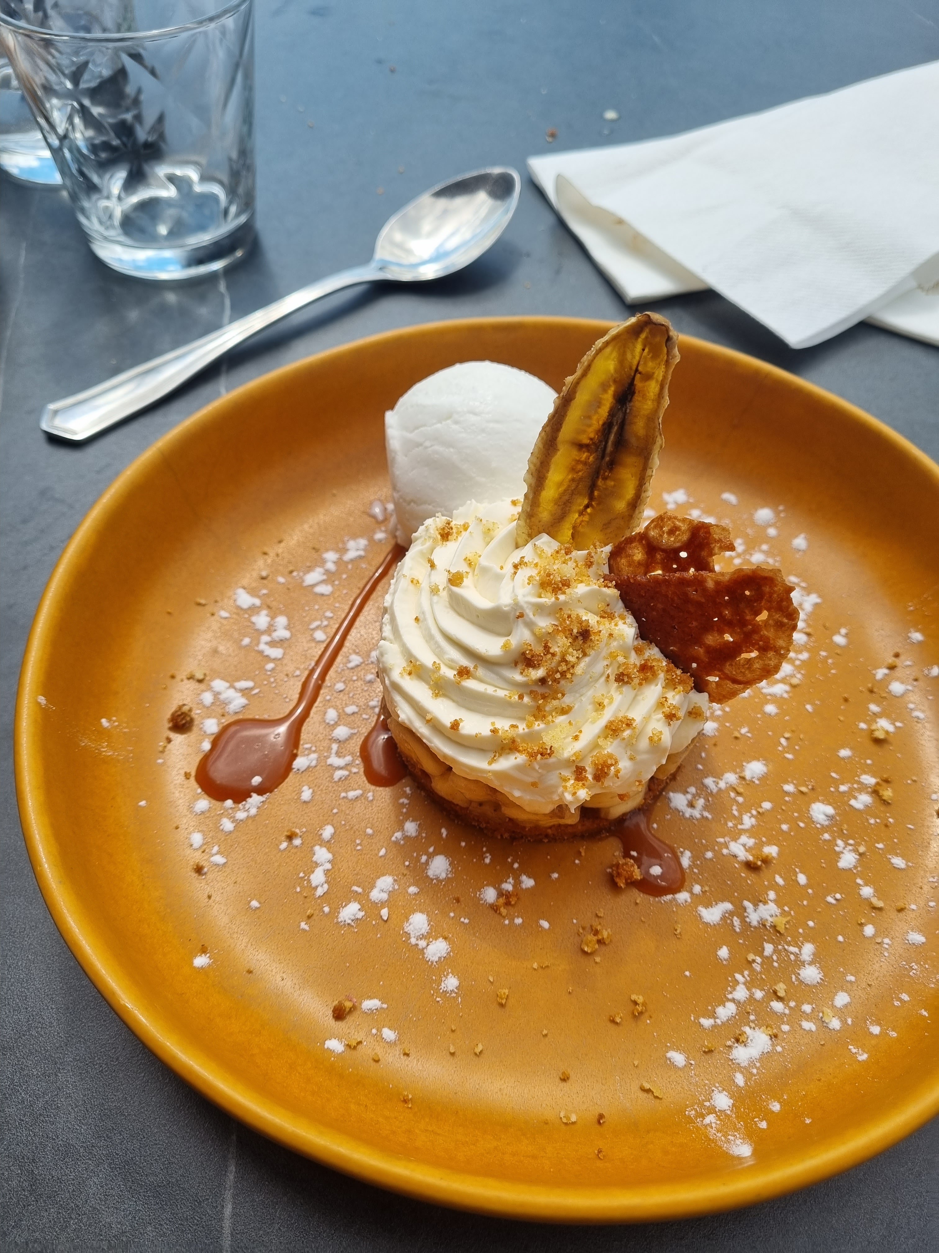 Accueil et service agréable.👍 Plat un peu juste, dessert un peu trop. Rééquilibrer les portions entre la pièce du boucher et le Banofee pie. Sur le filet de Cabillaud un peu moins de sauce rouille. Le menu brasserie sera au top.🤔😋