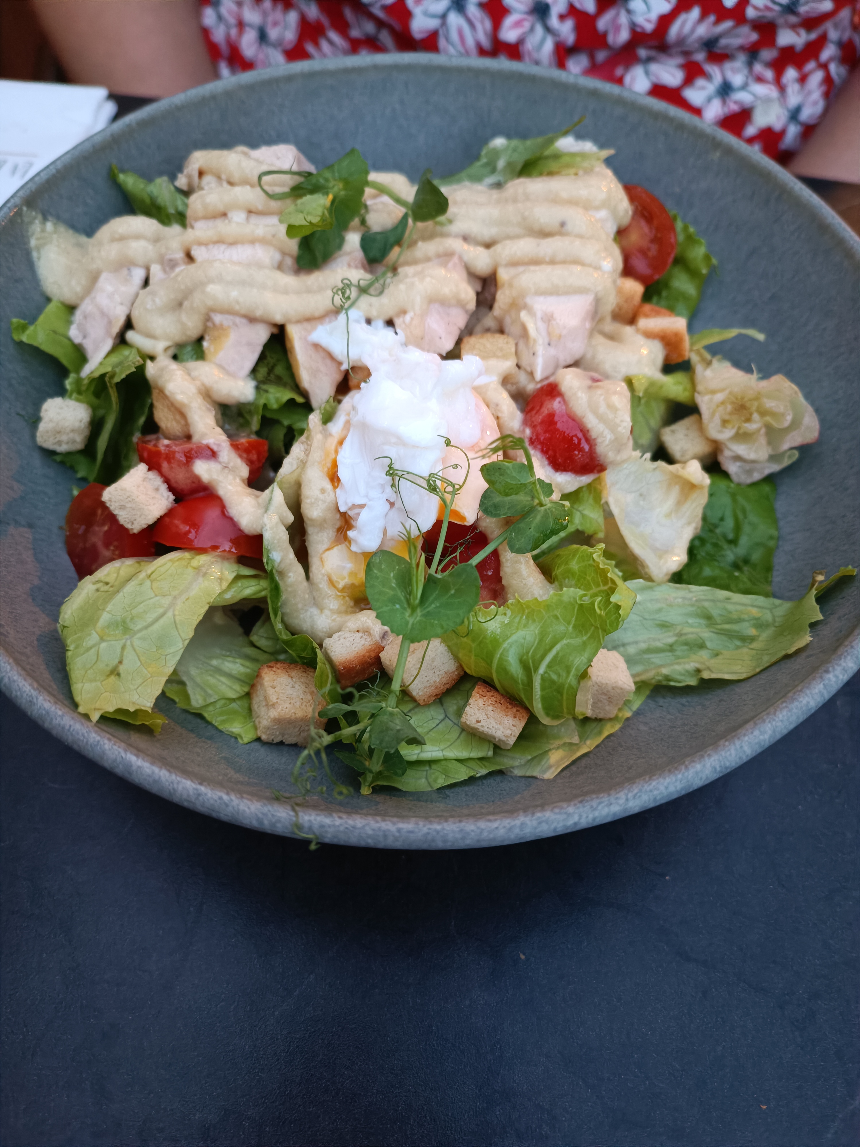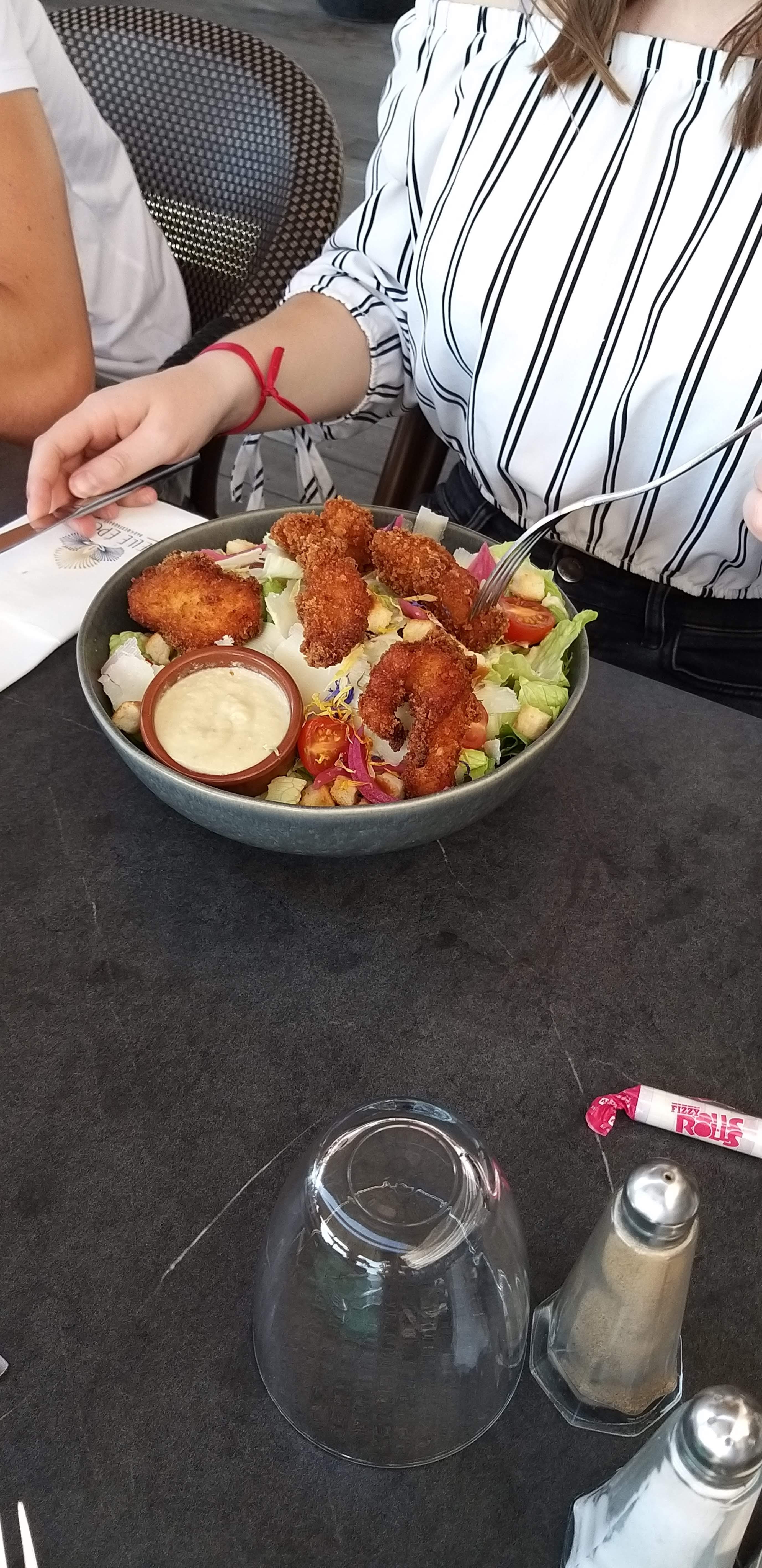 Ambiance très sympa,on se sent chez soi. Tables suffisamment espacées. Salades originales.Personnel très attentif. J y retournerai volontiers. Facilité pour se garer !