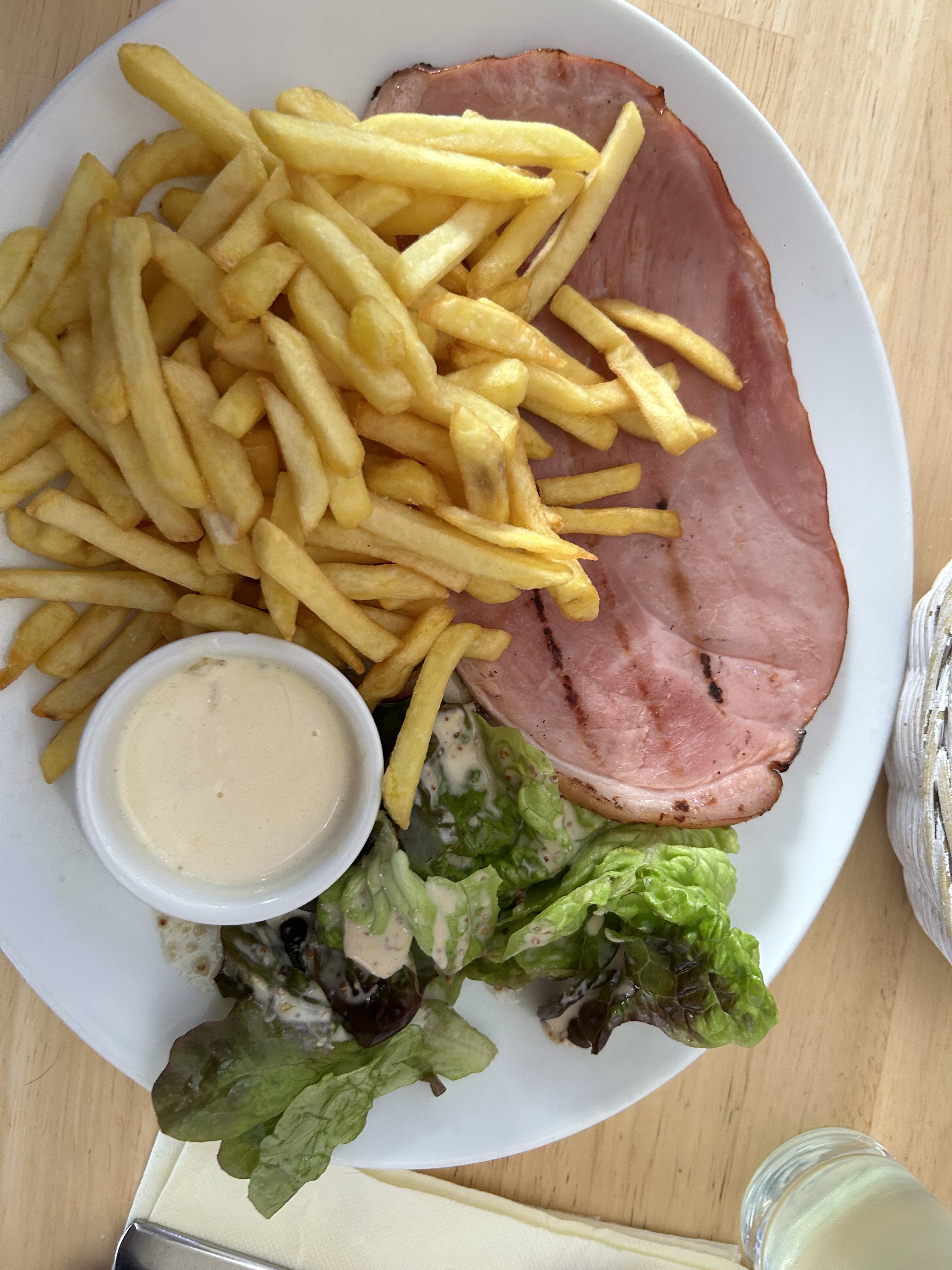 restaurant un peu cher, une salade avec trois petites tranches de jambon cru , un tiers de melon et quatre morceaux de pastèque 16€ , mojito à 9.50€, ok on est au bord de mer mais pas sur la côte d'azur, je connaissais ce restaurant depuis très longtemps où il règnait une cuisine de qualité et qui est devenu une brasserie à touriste.dommage