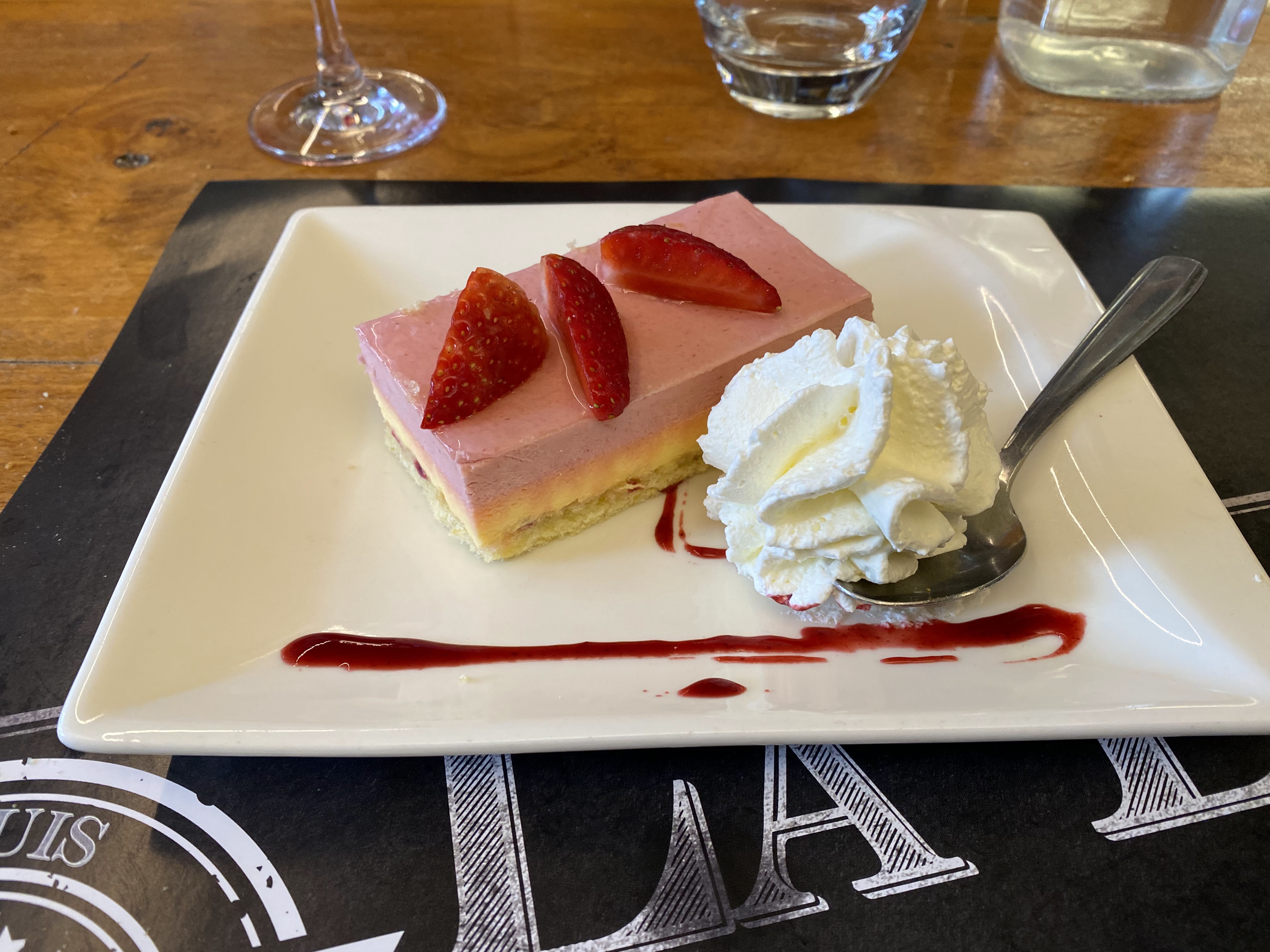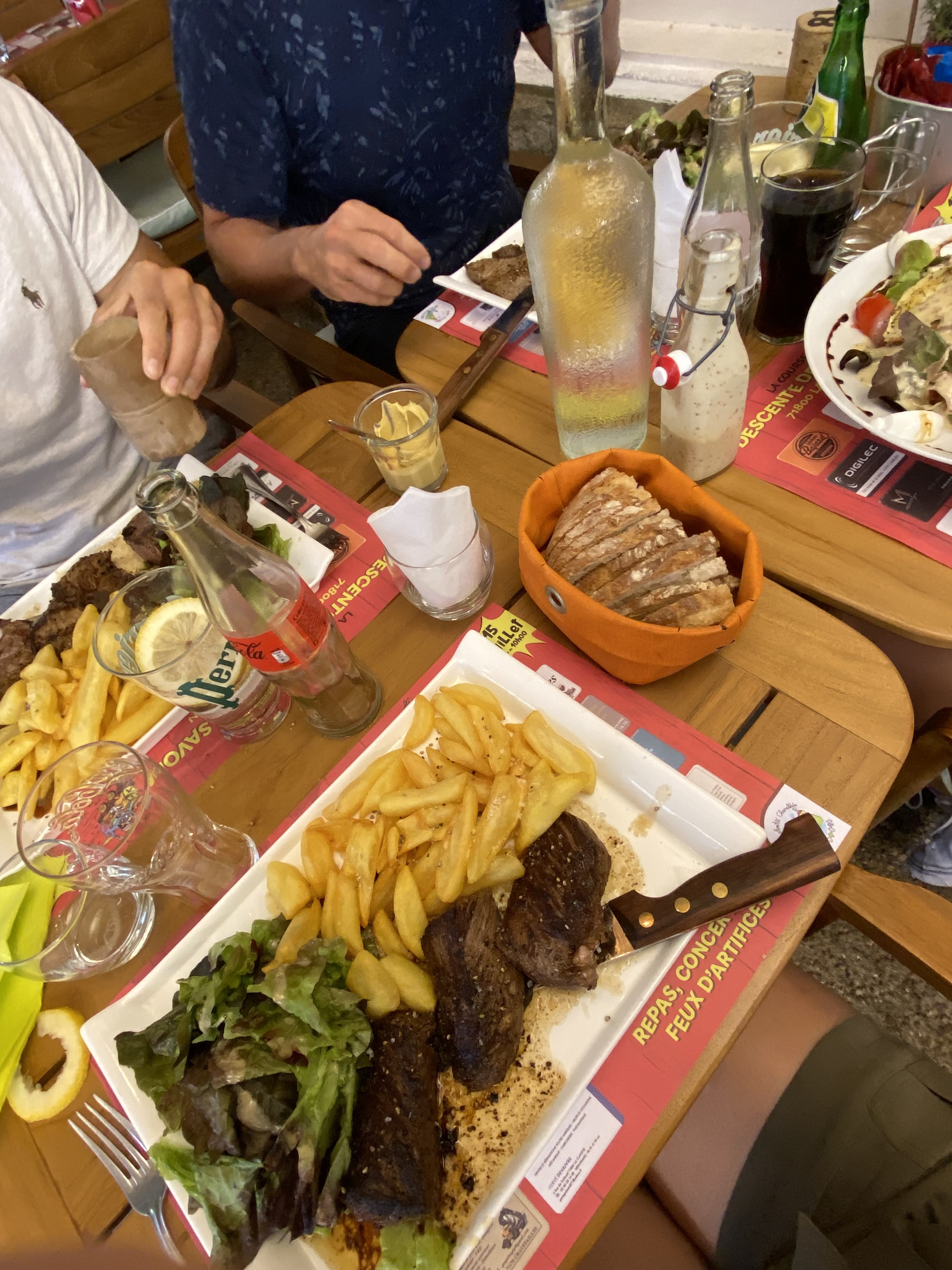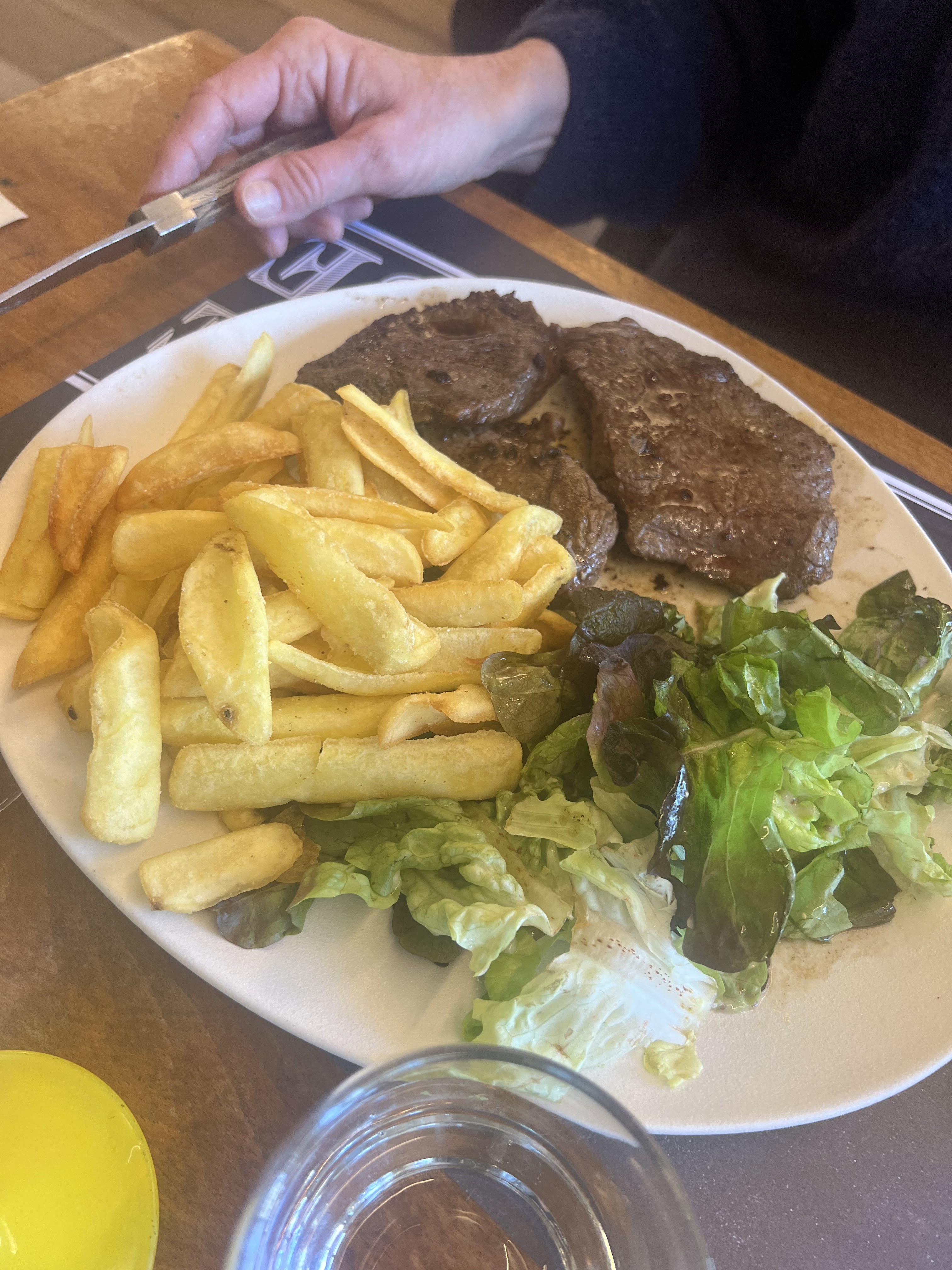 En face du château, une jolie déco, un service efficace, de la bonne viande …. Mais quel dommage de la servir avec des frites congelées cartonneuses et de la salade agrémentée de sauce diluée à l’eau ! Le patron encaisse les notes sans poser de question genre « cela vous a plu ? », c’est dire qu’il doit être conscient des quelques points faibles de son établissement …