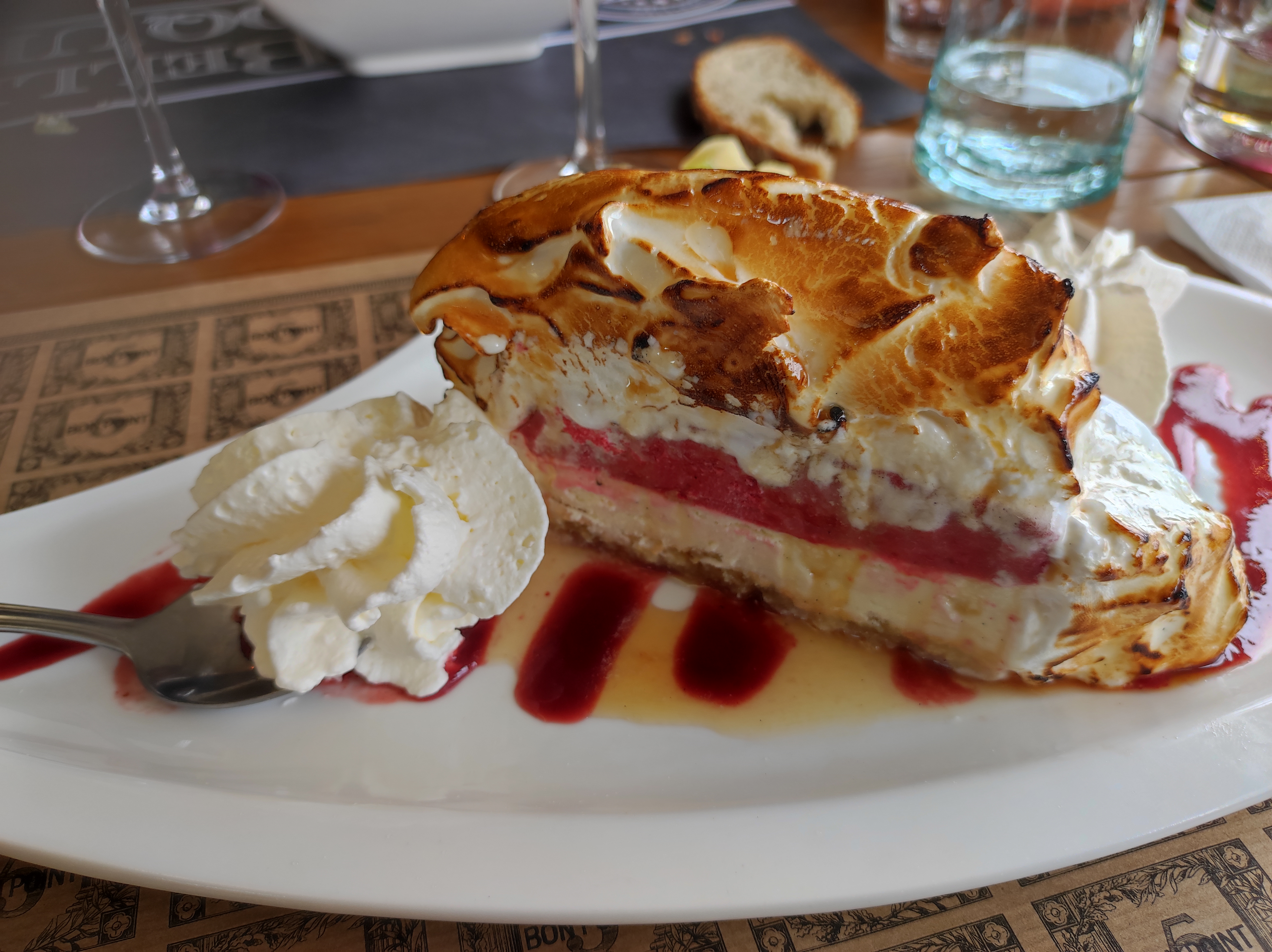 De l'accueil jusqu'au dessert, ce fût parfait Nous avons choisi la carte avec un tartare au couteau d'exception et un plat végétarien très copieux, magnifique omelette norvégienne Vin en pichet excellent Bref nous y retournerons