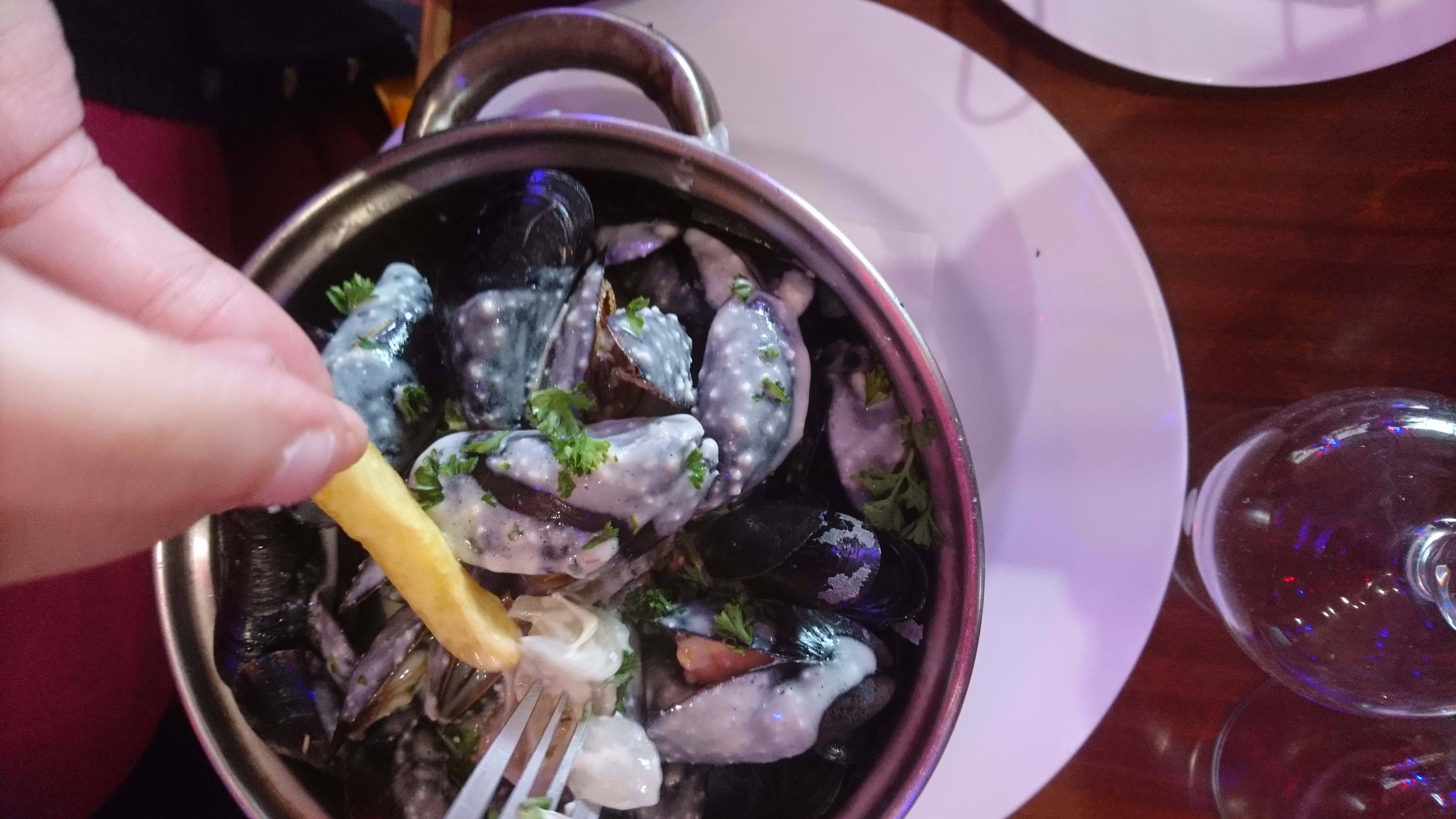 Nous avons commandé deux portions de moules chorizo, une normande ainsi qu'un faux filet, très bon tous cependant un peu le goût d'eau et un caillou dans une des trois. Le vin blanc est à éviter cependant, sinon cela reste correct et la serveuse est agréable