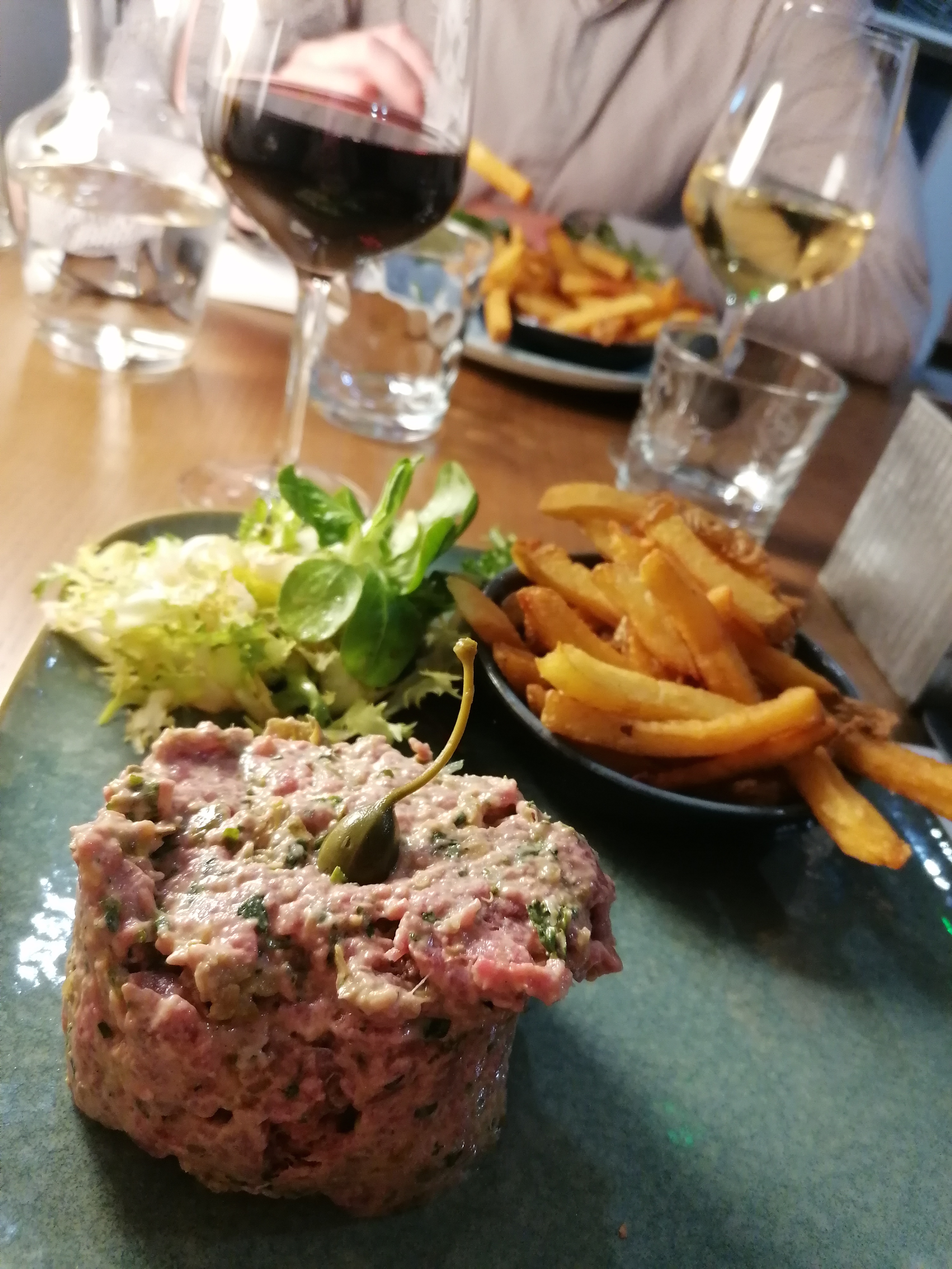 Pièce du boucher hyper tendre, frites maison,sauce au poivre qui a du goût.Serveuse et serveur hyper souriant et polis et pas cher.je le recommande vivement