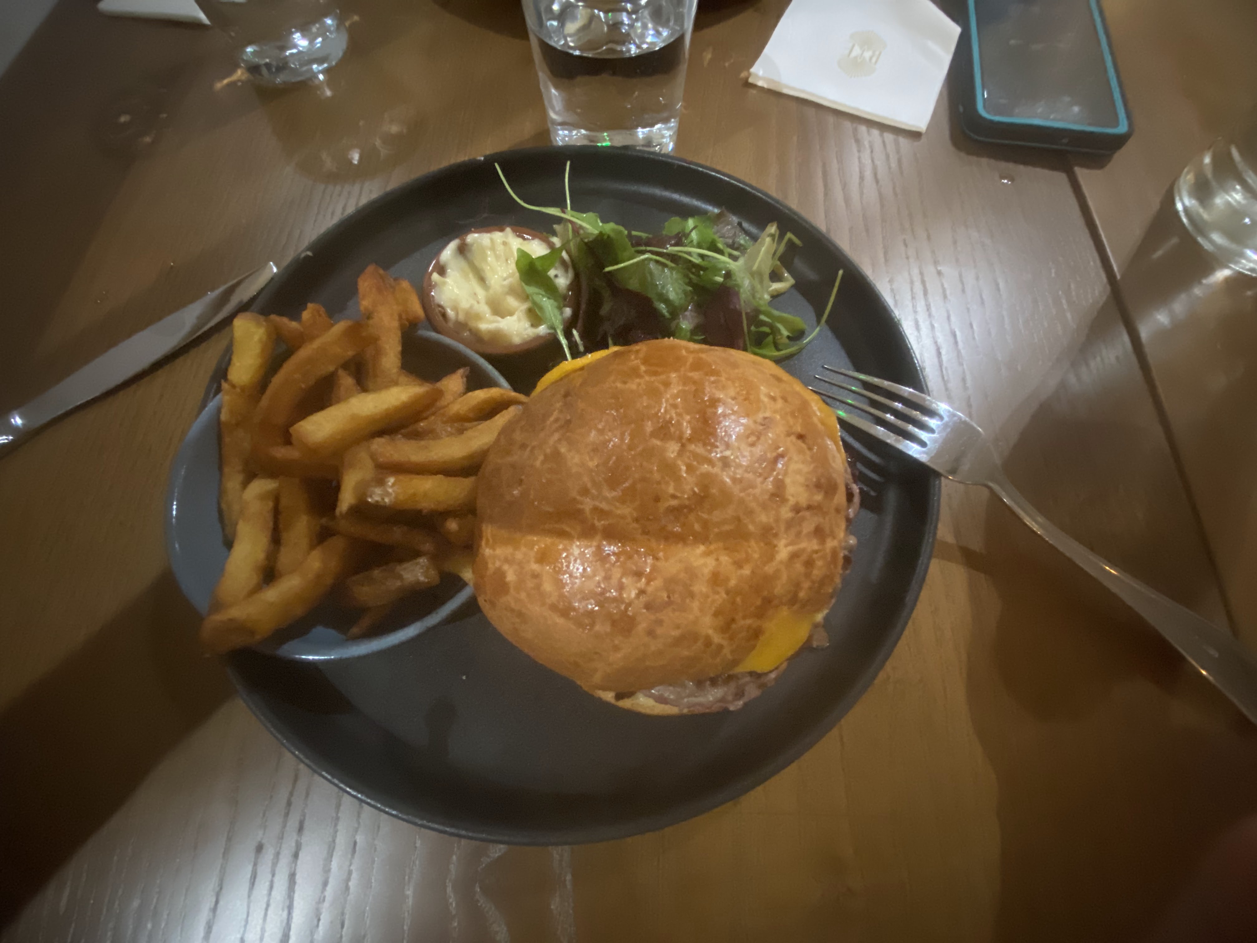 Service rapide, le Burger était très bon. Choix très léger de menus et de boissons Café gourmand à revoir:4 gâteaux secs pour 8€!!. Aucune comparaison avec celui de Vannes !