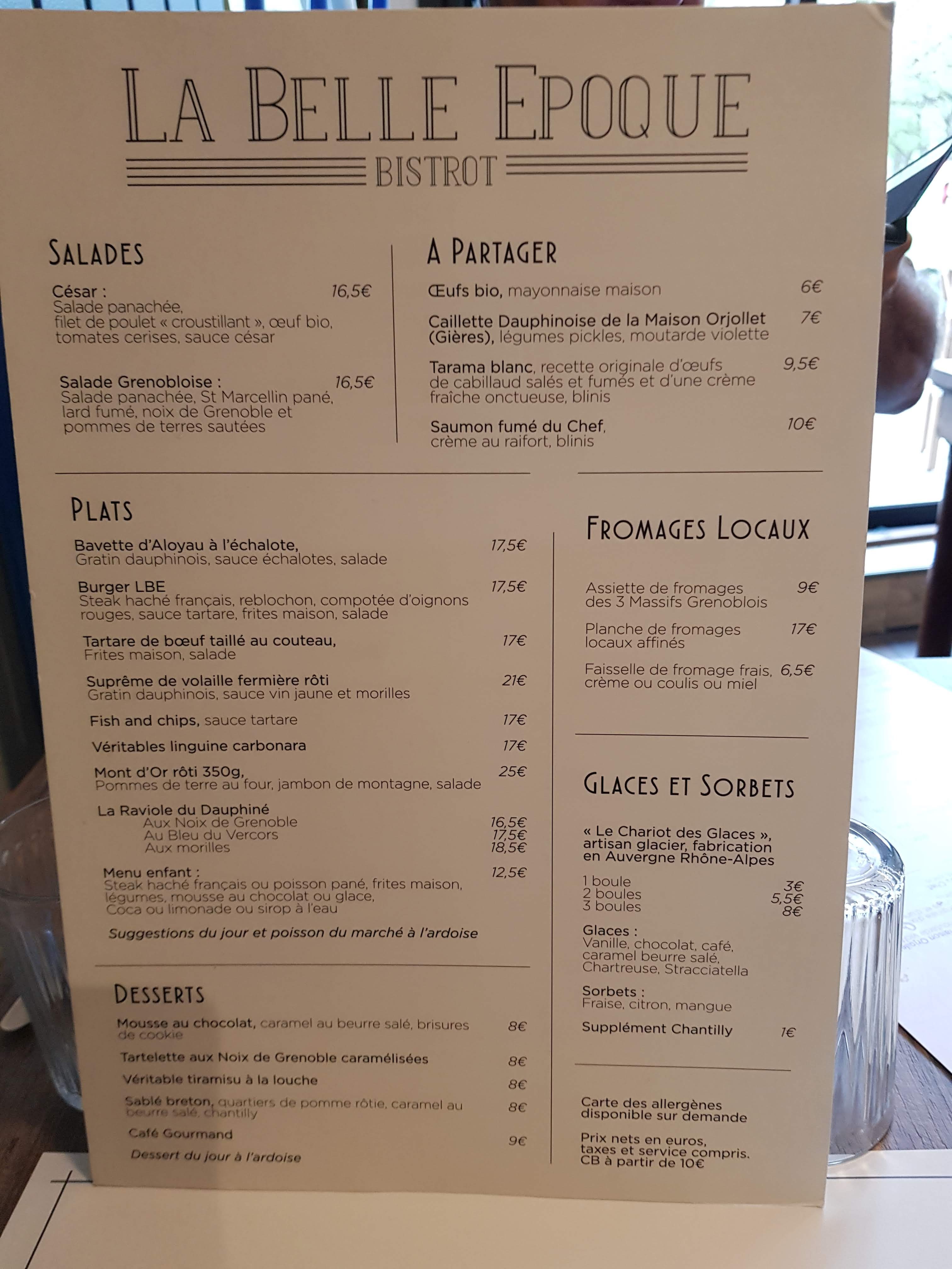 Nous aimons venir à la Belle Époque car les serveurs et serveuses sont adorables et ça fait tellement du bien de tomber sur des gens, respectueux et polis La cuisine est traditionnelle, bien préparée, tout est fait maison (meme les sauces type mayo, les frites, les desserts, etc…) rien n’est surgelé comme on peut le voir souvent ailleurs Le cadre extérieur est très agréable (terrasse, parc) et l’intérieur très cosy, charmant et bien décoré Les prix sont très corrects et s’alignent à ceux des établissements du même type à Grenoble ou autres dans le coin Nous y venons souvent et nous recommandons cet établissement car on s’y sent vraiment bien !