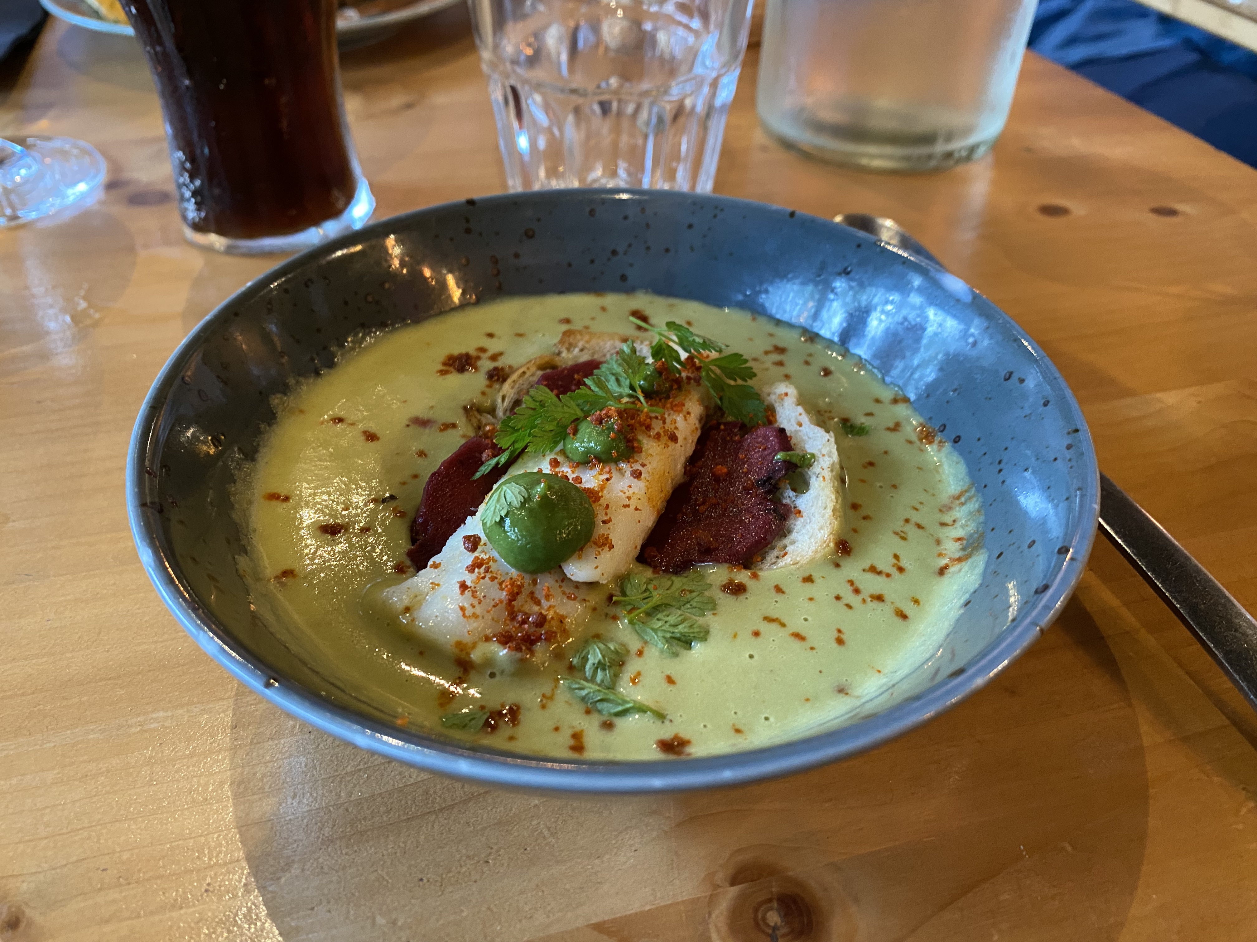 Très belle carte justement limitée avec des très bons produits de saison Cuisine fraicheur préparée avec finesse Equipe très sympa et déco simple et détendue