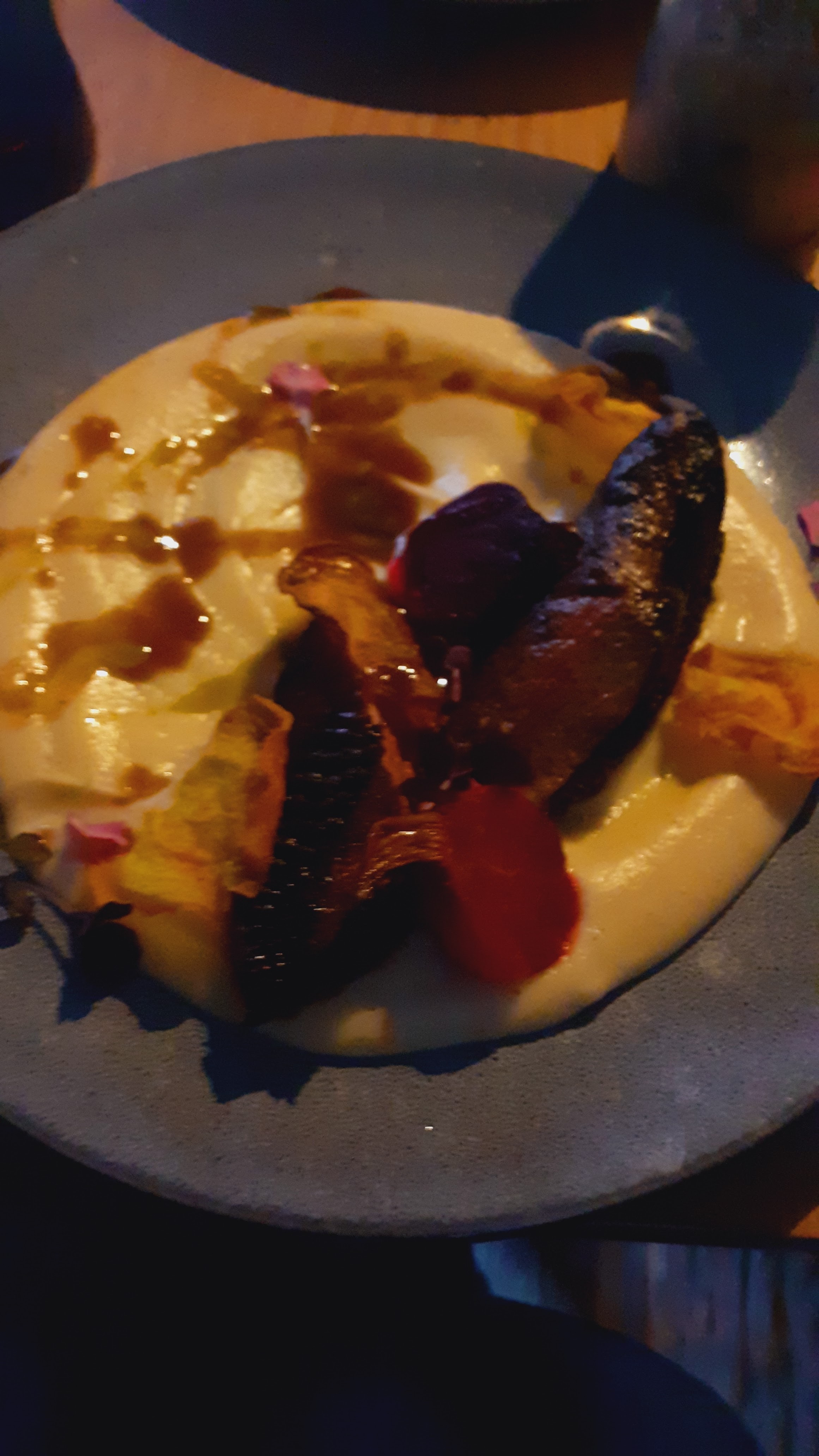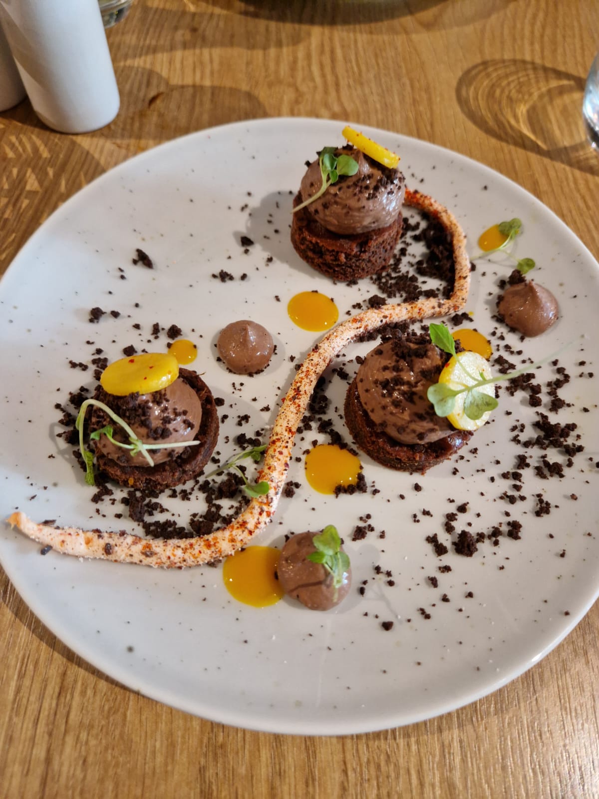 Enfin la découverte de ce lieux et que dire...Une cuisine raffinée et moderne,mon choix camembert à l huile de truffe une tuerie sans parler du fondant au chocolat Pour les hommes, un passage obligatoire au WC je vous laisse découvrir cette très bonne surprise