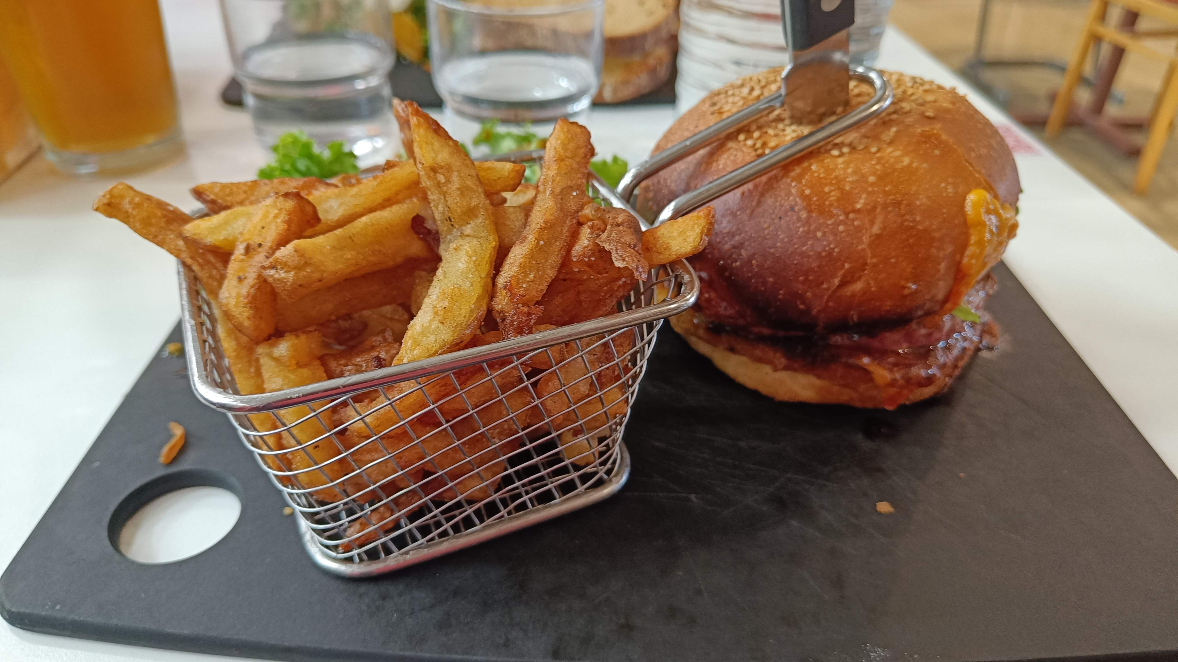 Service rapide efficace, bon burger -- la bavette était bonne également et on apprécie le coleslaw allégé en accompagnement. En dessert le cheesecake avait du goût et aussi de la texture grâce à son biscuit; par contre le fondant au chocolat est très très bourratif il faut avoir la dalle :)