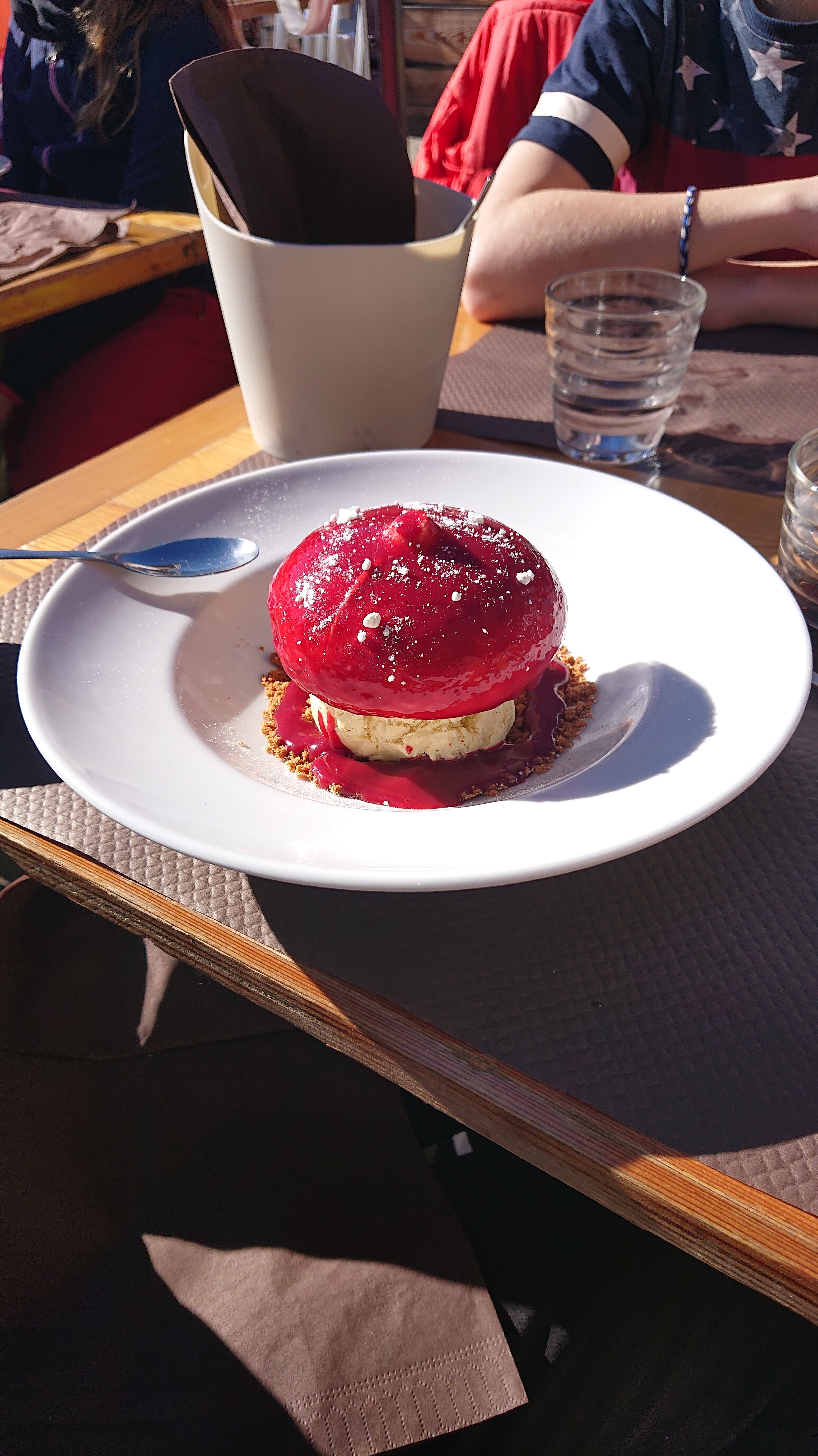 Très bonne adresse, service irréprochable, cuisine savoureuse. Au milieu des pistes de ski la terrasse ensoleillé est très agréable pour une pause déjeuner. Ci joint la photo du dessert, trop bon