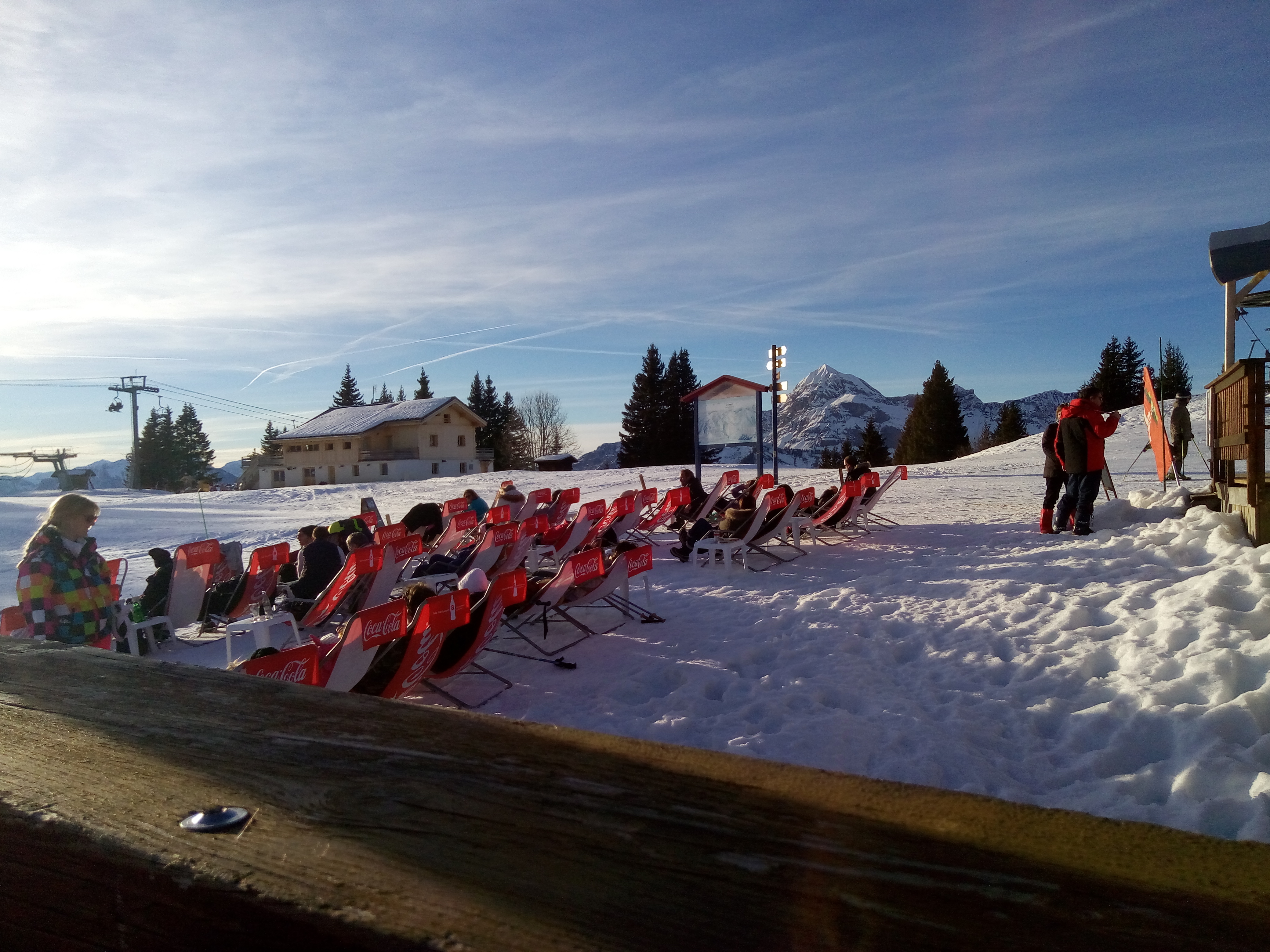 Maxi terrasse pour manger ou boire un verre au milieu des pistes de ski. Top en saison estivale moins en pleine saison (hivernale)