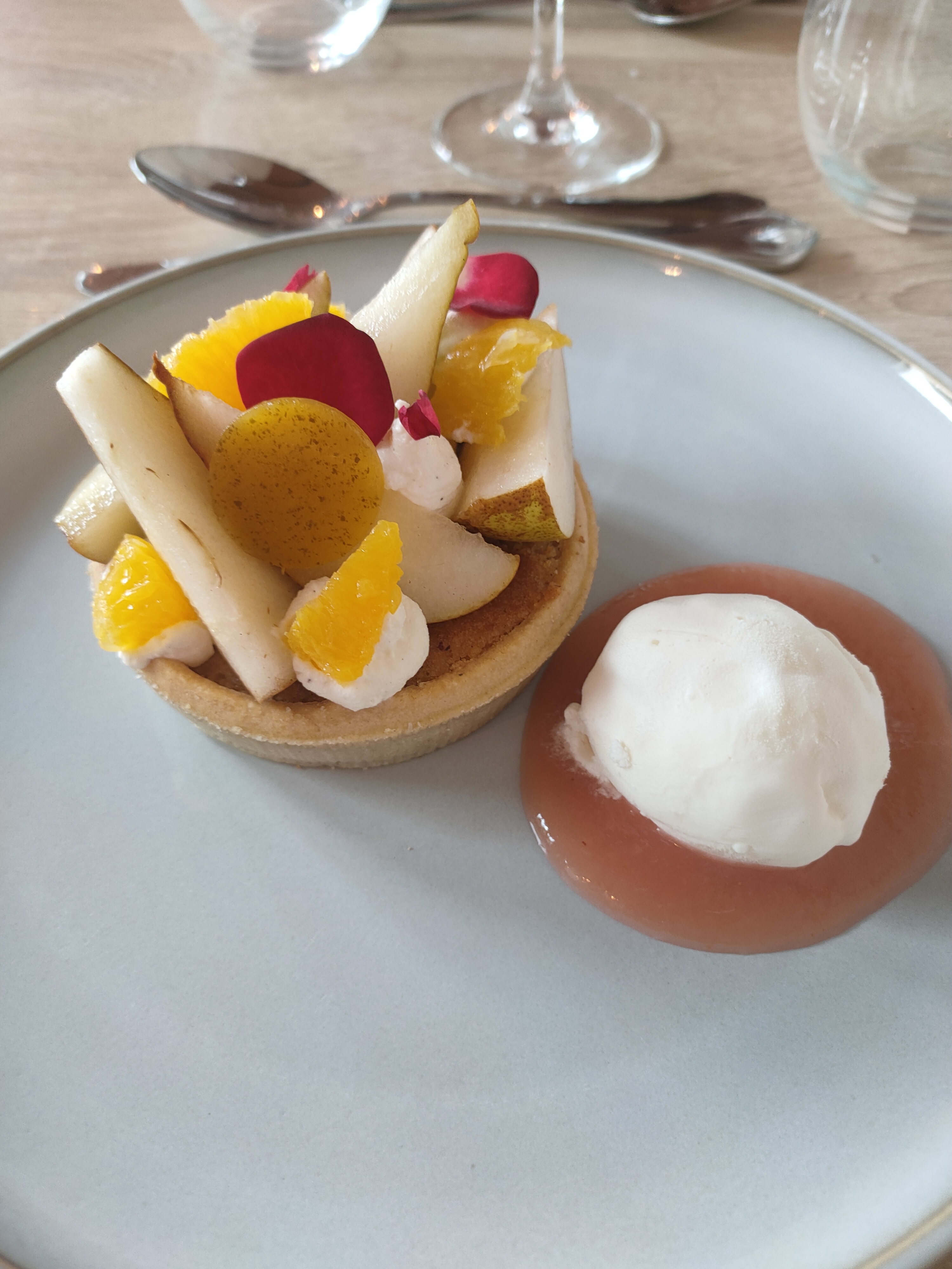 Invitée par mon fils, je n'ai pas été déçue. Par cette belle journée de septembre, nous avons pu déjeuner en terrasse dans un cadre très calme. Nous nous sommes régalés grâce au fin mélange des saveurs de chaque plat. La découverte de la glace au foie gras a été la cerise sur le gâteau. Merci au chef pour le service et les explications.