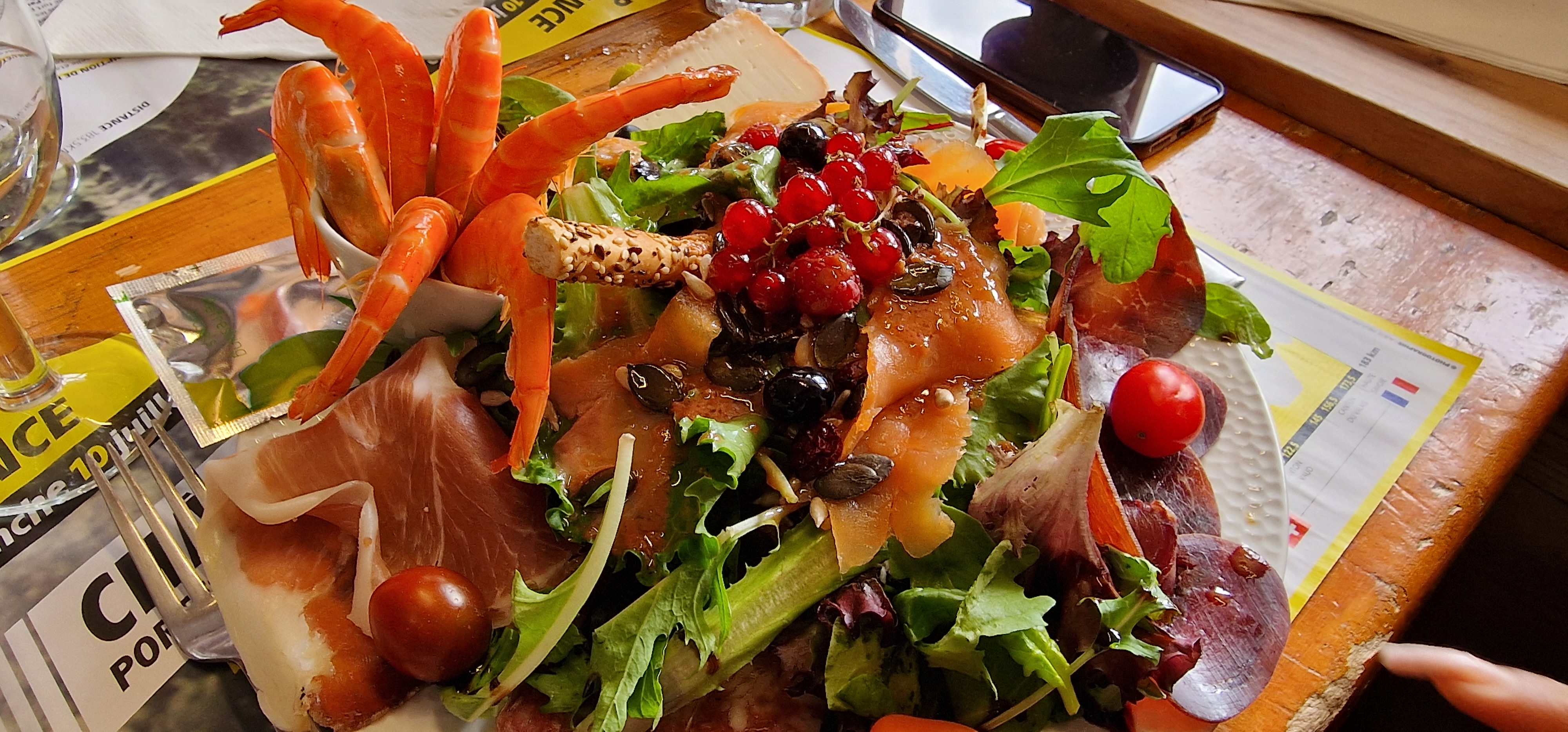 Endroit très agréable et accueil chaleureux. Ensuite les choses se corsent car au moment de la commande impossible de manger ce que l'on veut. La dame au chapeau vous impose ses choix probablement en fonction de ce qu'elle a dans son frigo. Une belle rencontre à la note très salée .