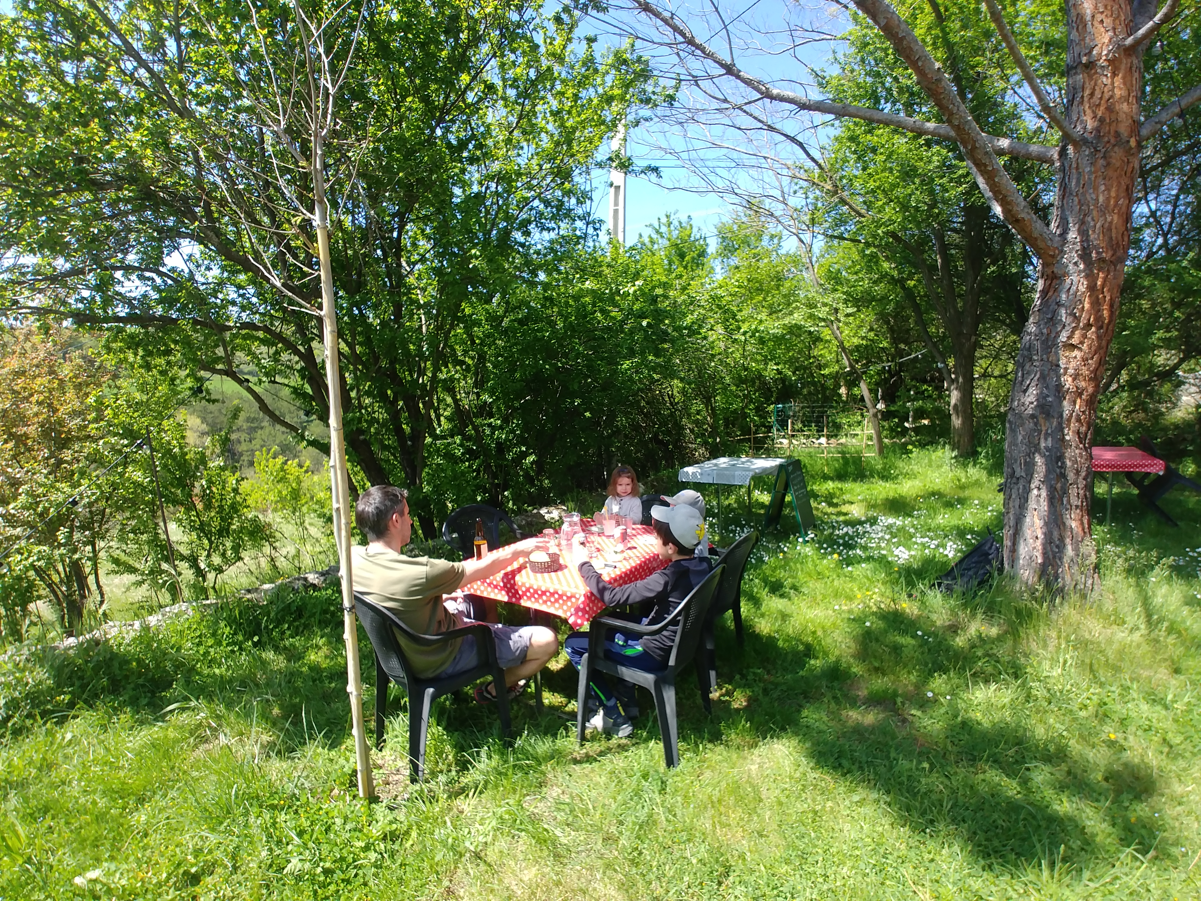 Chouette camping en pleine nature, amis grimpeurs d'Omblèze le camp de base idéal avec super terrasse pour la bière (des 3 Becs bien sûr !) méritée de la fin de journée. Merci à Anaïs et Alice pour le bon accueil et pour le rajeunissement en écoutant la collection de vinyles du bar !! A bientôt