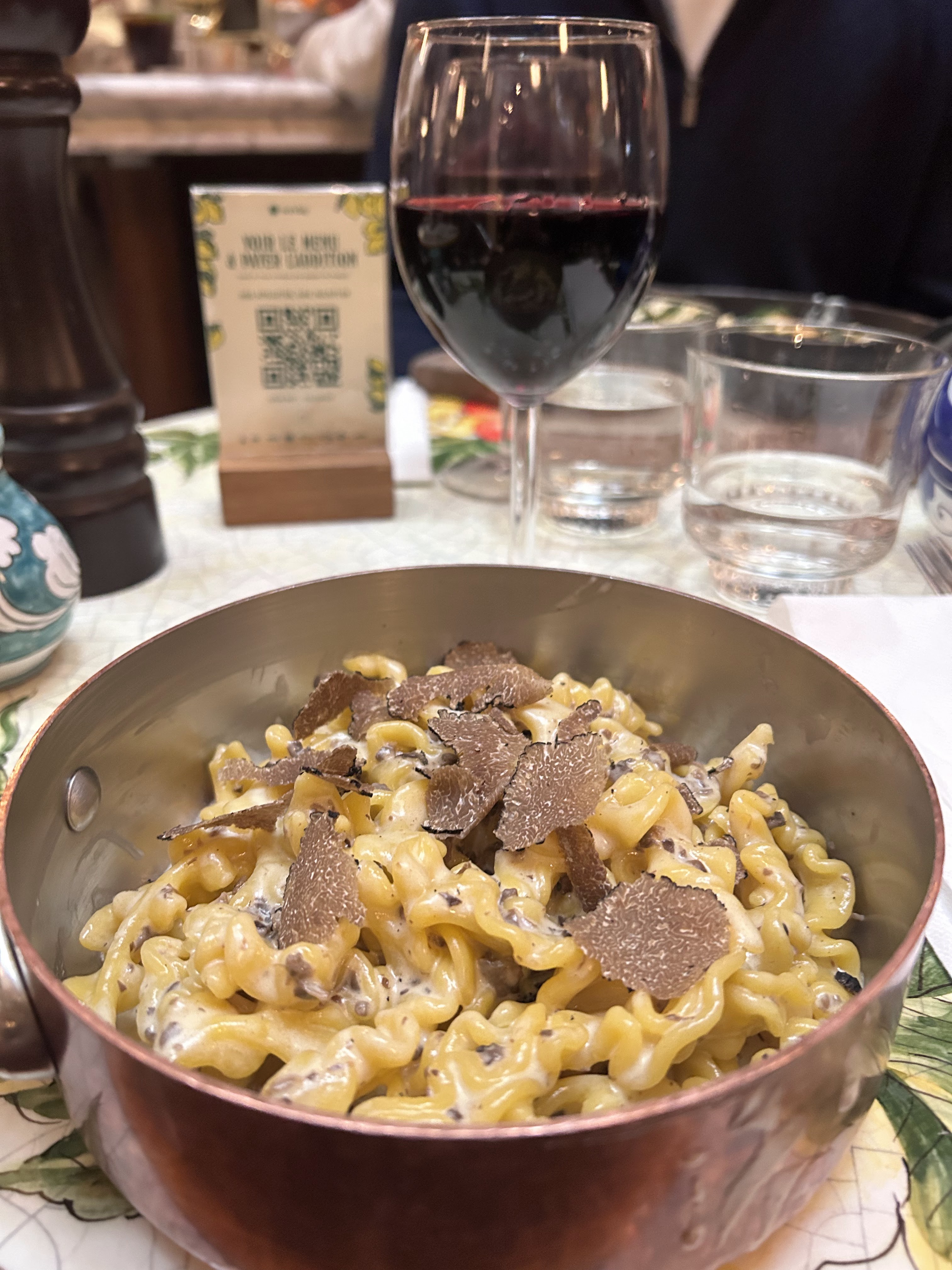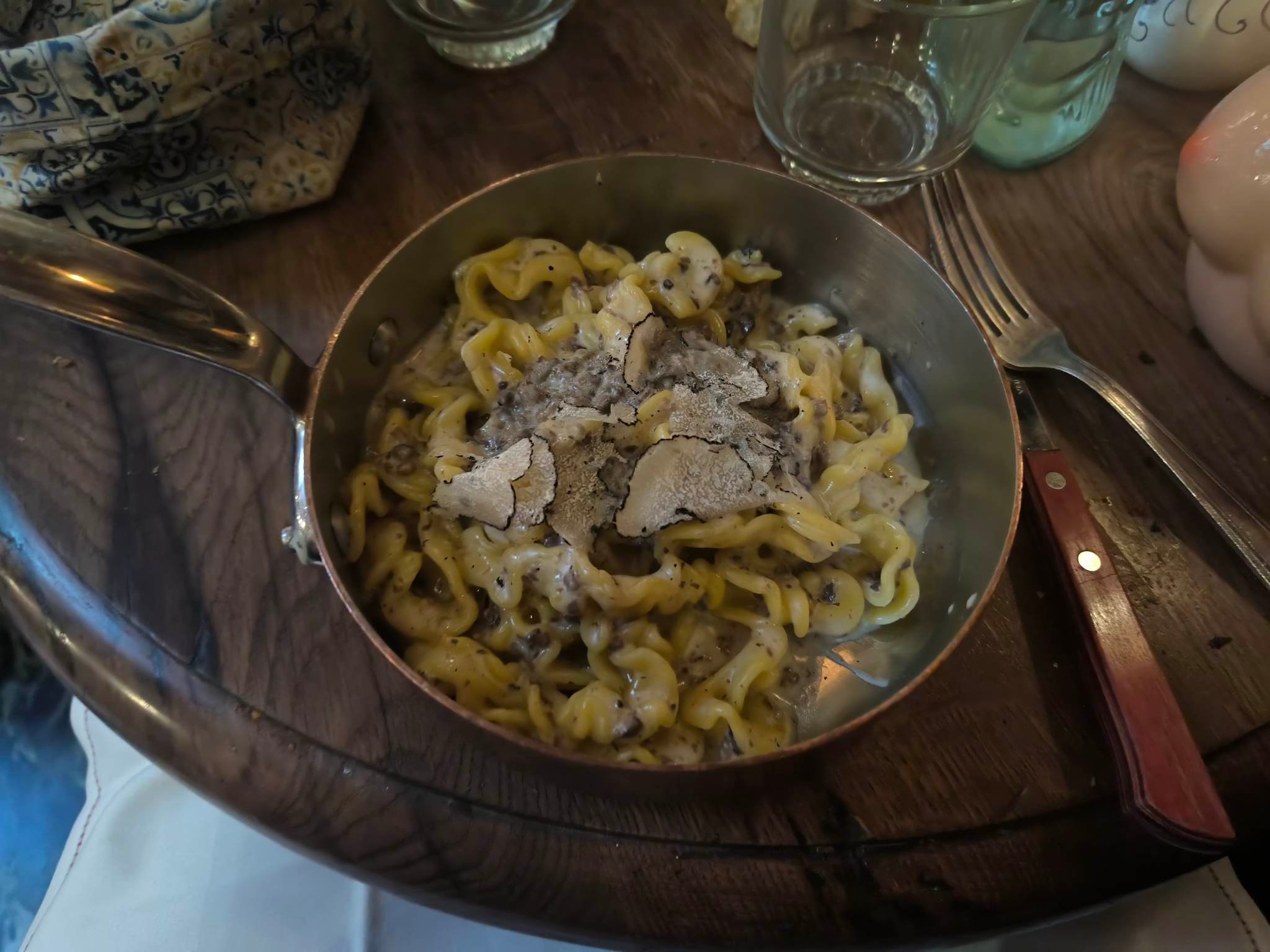 C’est la deuxième fois que nous nous rendons dans ce merveilleux restaurant. À vrai dire, nous nous déplaçons de Belgique uniquement pour y venir! Les pâtes à la truffes sont délicieuses et très abordable. La bonne humeur et gentillesse des employés rends l’endroit encore plus chaleureux qu’il ne l’est déjà. Merci aux cuisiniers pour les délices et au personnel de salle pour cet accueil « à la bonne humeur italienne » ! Nous ne sommes pas adepte d’éterniser les repas dans les restaurants donc le côté « rapide » lorsque nous allons sans rendez vous nous convient parfaitement ! Servis en 15 minutes, manger en 20 et ensuite on s’en va avec le ventre plein et le sourire aux lèvres.Merci 🙏🏼😊