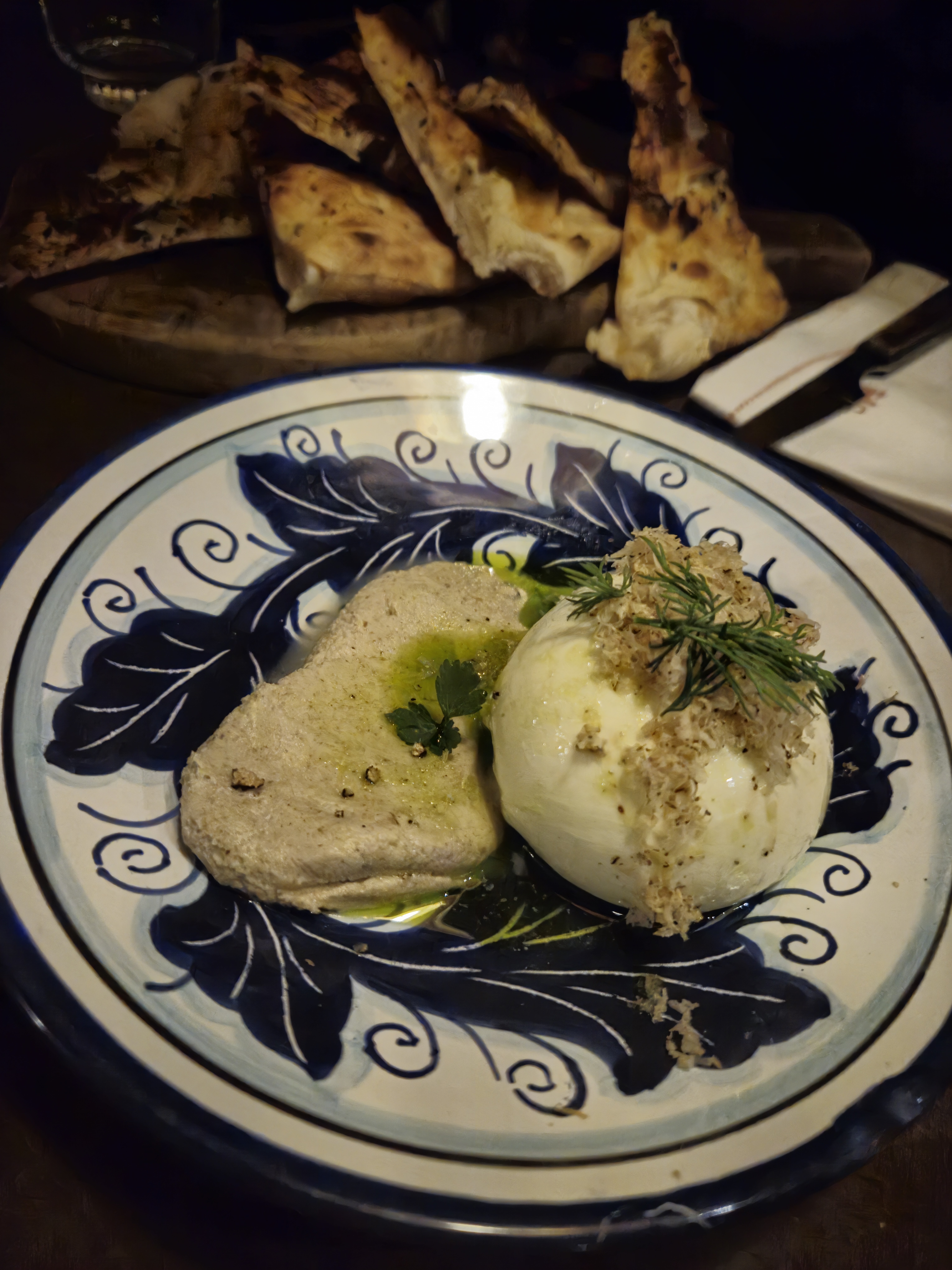 Définitivement l’une des meilleures expériences culinaires italiennes que nous avons pu expérimenter ! Au niveau des entrées, nous nous sommes régalés d’une stracciatella fumée parfaitement assaisonnée. Une véritable explosion de saveur lorsque mélangé avec la focaccia craquante toute juste sortie du four. Très difficile de ne pas également recommander les pâtes aux truffes, qui valent à elles mêmes le détour dans ce restaurant. Les portions sont généreuses et les produits de très bonne qualité, il nous est également offert la possibilité de prendre les restes à emporter. L’ambiance ainsi que le cadre du restaurant est top, avec une attention des détails chouette au niveau de la vaissellerie et de la décoration. Nous sommes arrivés à 21h, aussitôt placé et reparti à 23h sans être pressé à finir. Merci pour cette merveilleuse expérience difficilement oubliable !