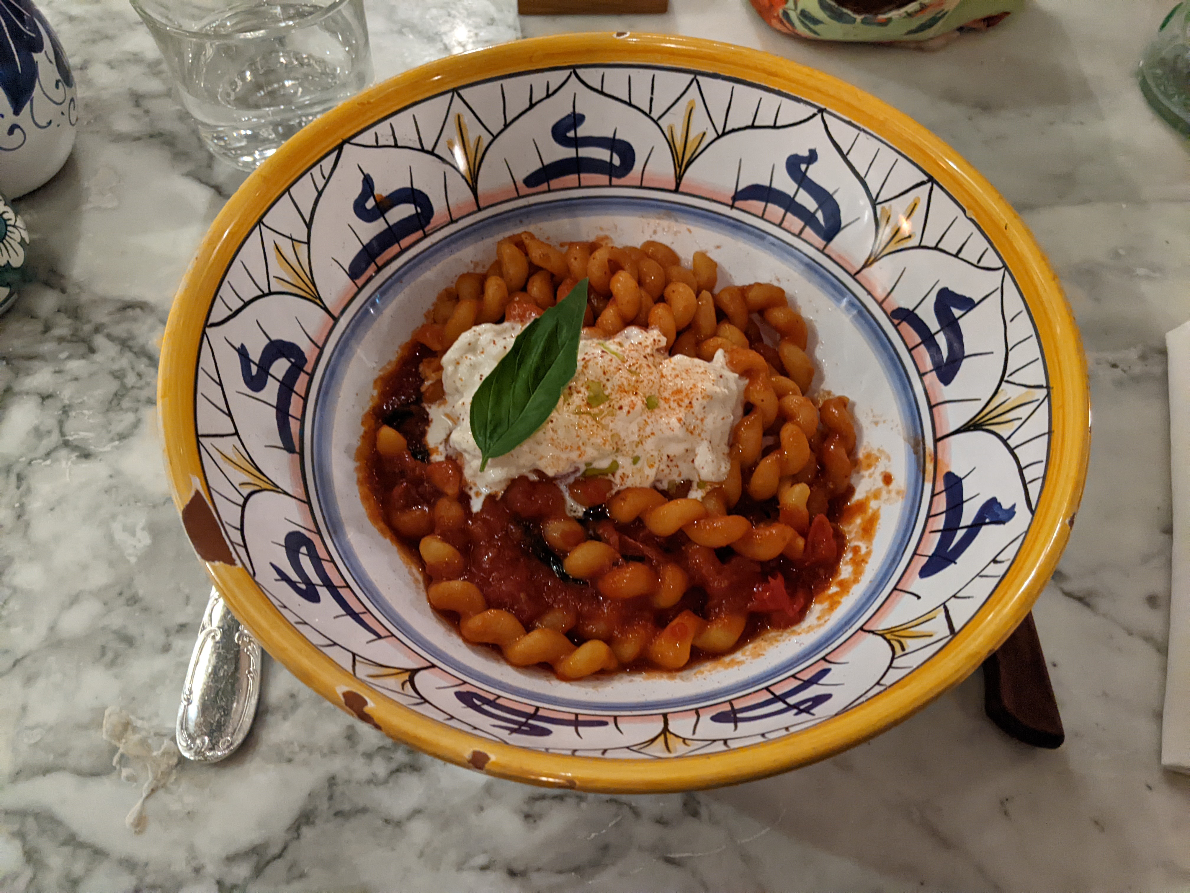 L'atmosphère est charmante, mais le service était lent car le restaurant à l'intérieur est assez grand. La burrata était délicieuse, je ne peux pas en dire autant de ces pâtes. La prochaine fois, j'essaierai des pizzas ici